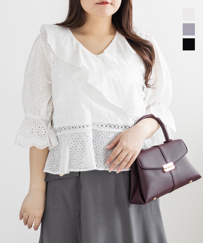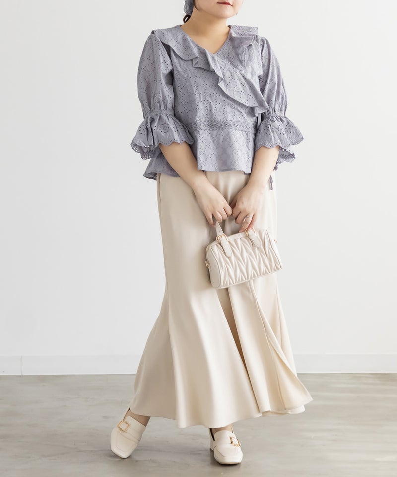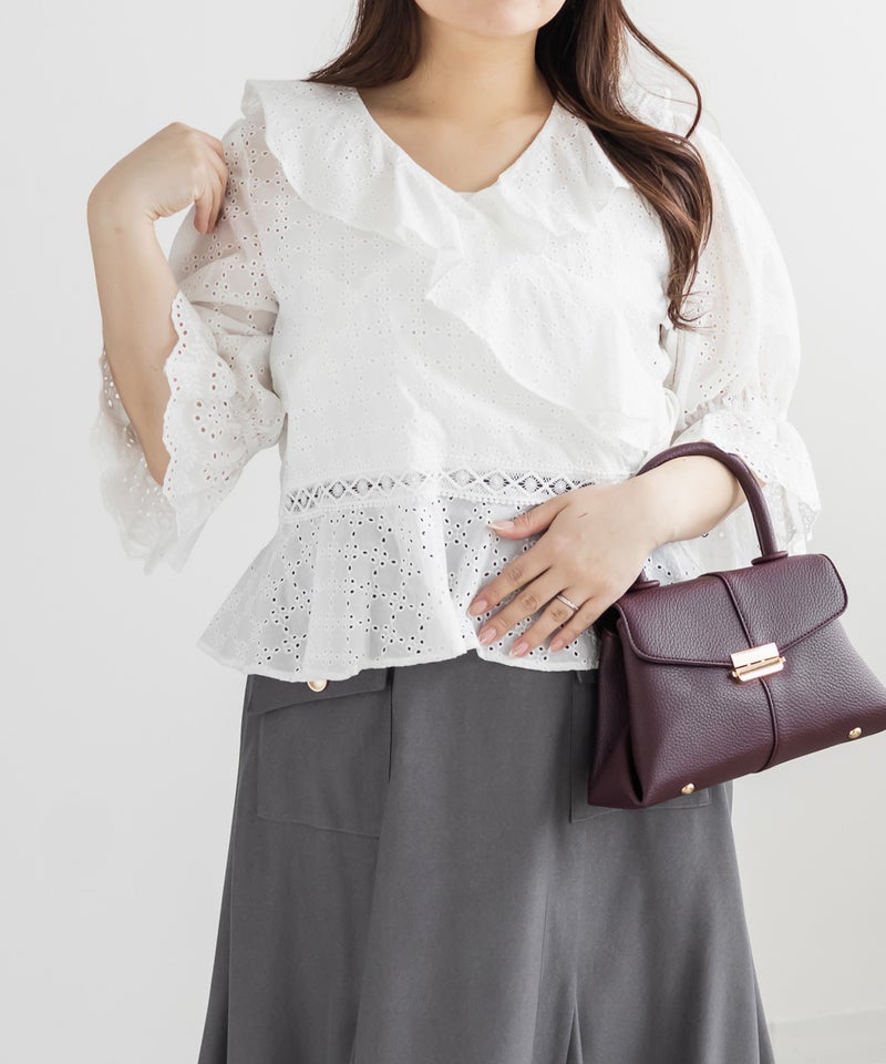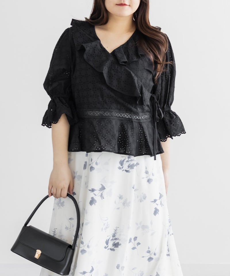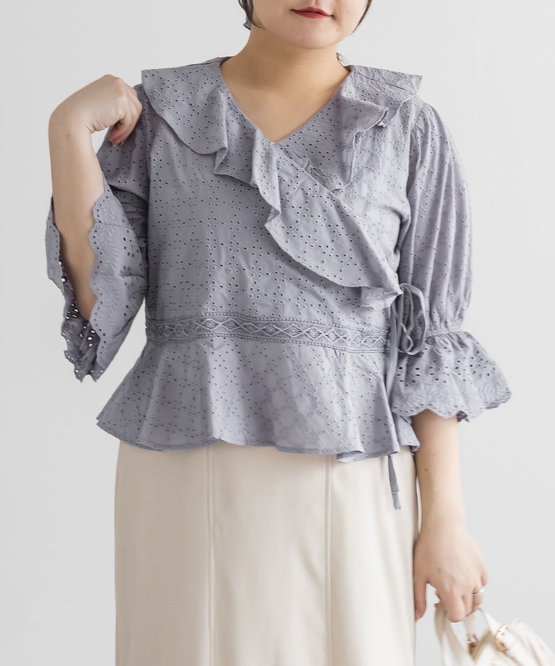 3Lサイズを着てみて、カシュクールデザインのおかげでメリハリのあるシルエットに見えました◎窮屈感も無く、いつもどおりのサイズ選びで良さそうです!丈感が少しコンパクトでとってもスタイル良く見えました!レースの甘さと抜け感が絶妙で、ワイドパンツやデニムに合わせるだけでこなれた印象になります!スカートにも合わせやすいフェミニンなデザインなので、この夏たくさん着回しできそうです!