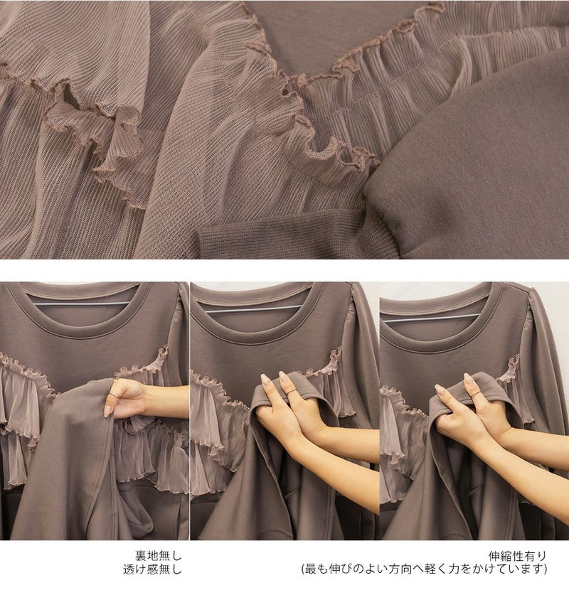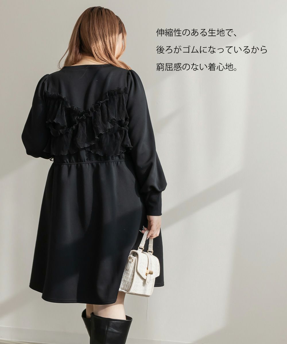 3Lを着て丁度いいサイズでした。トレンドのチュール生地を使ったビスチェをレイヤードしたようなデザインで1枚でかわいい!らくちんなワンピにチュールがくっついていてお腹や二の腕など気になる部分をしっかりカバーしてくれます◎1枚でフェミニンなスタイルが完成するコーデいらずの可愛いワンピースです!ボディラインを拾いにくい生地感とディティールがポイントです!重ね着が苦手な方でも悩まずにレイヤードスタイルになれて、可愛いだけじゃなくて着やせを考えたデザインなのが嬉しいです!