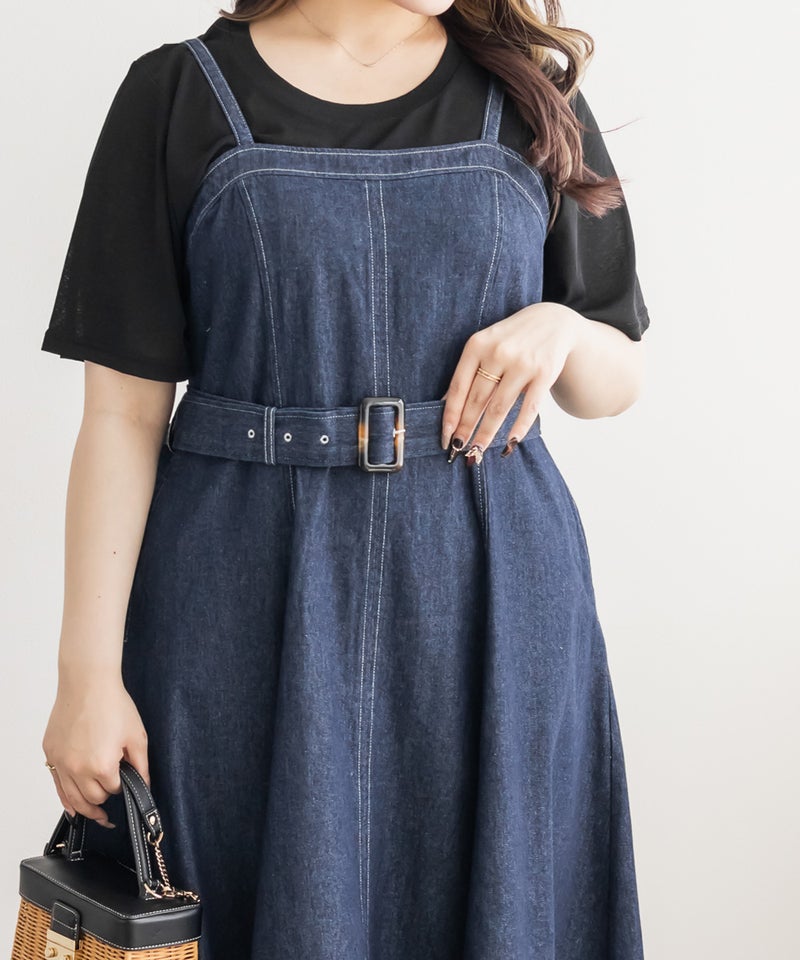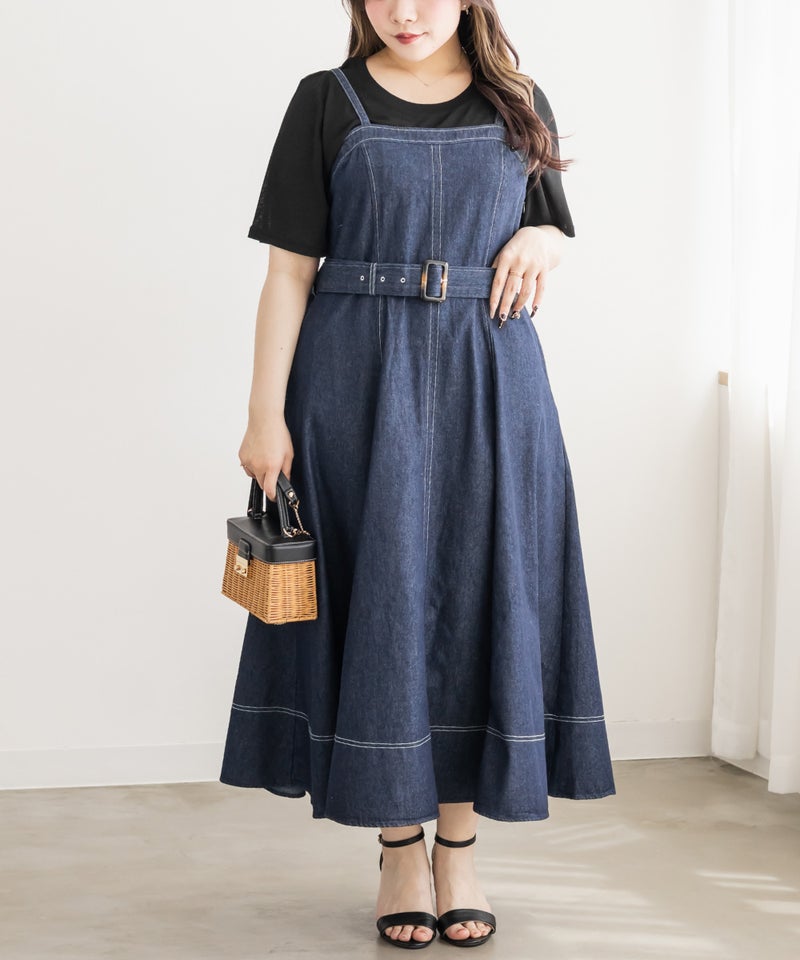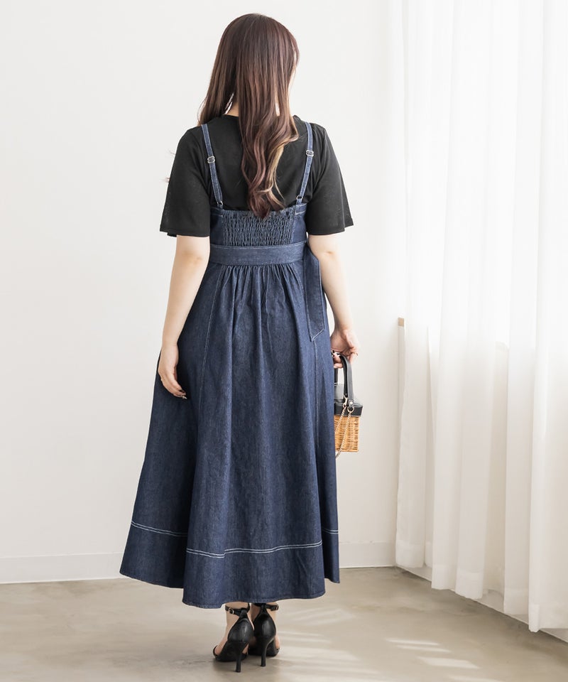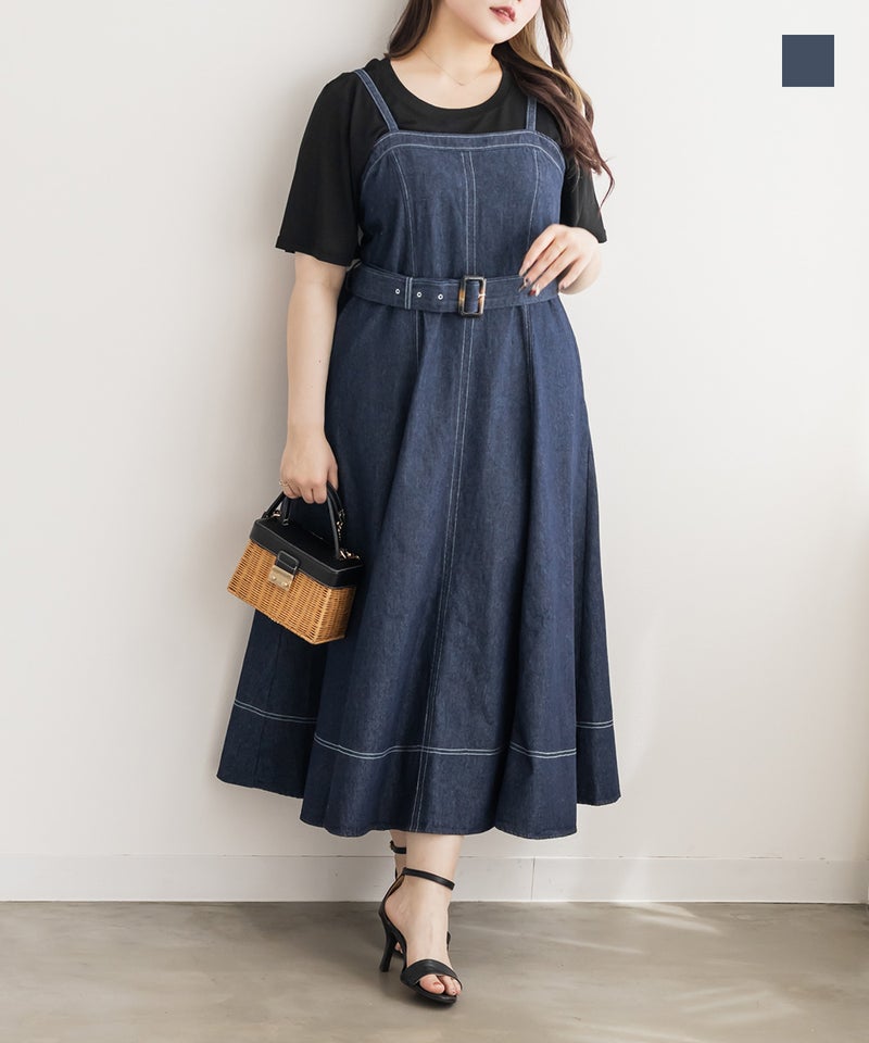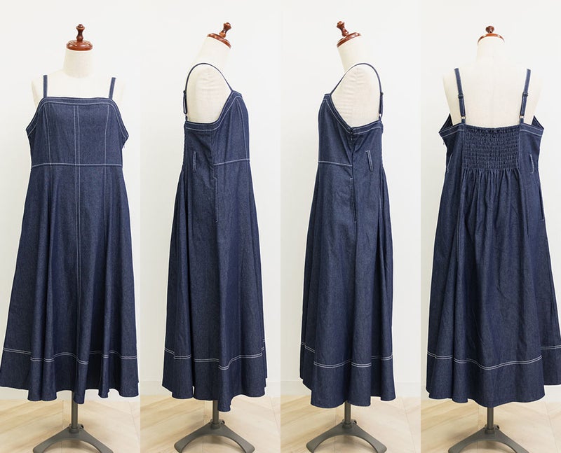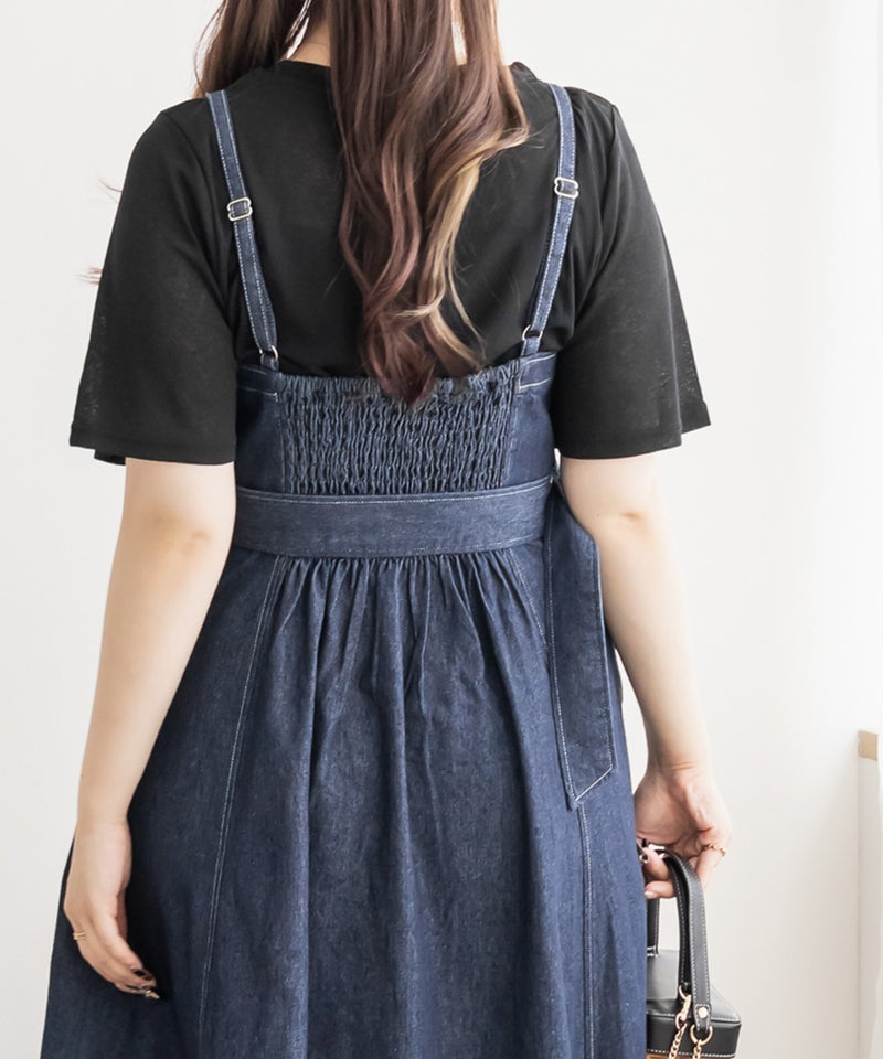 3Lを着て丁度いいサイズでした。上半身すっきりしながらお腹やお尻をしっかりカバーしてくれる着やせできるデザインです。綺麗なシルエットだけど窮屈感のない着心地だからストレスフリーにお出かけできちゃいます◎美人見えするシルエットだから、デニム生地でもカジュアルになりすぎずに大人っぽい着こなしになれます!オールシーズン使えて着映えするワンピースです♪