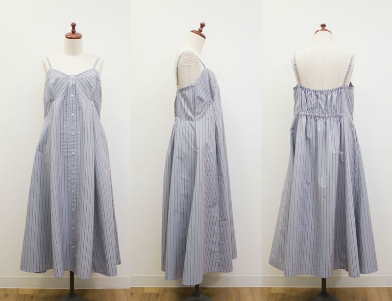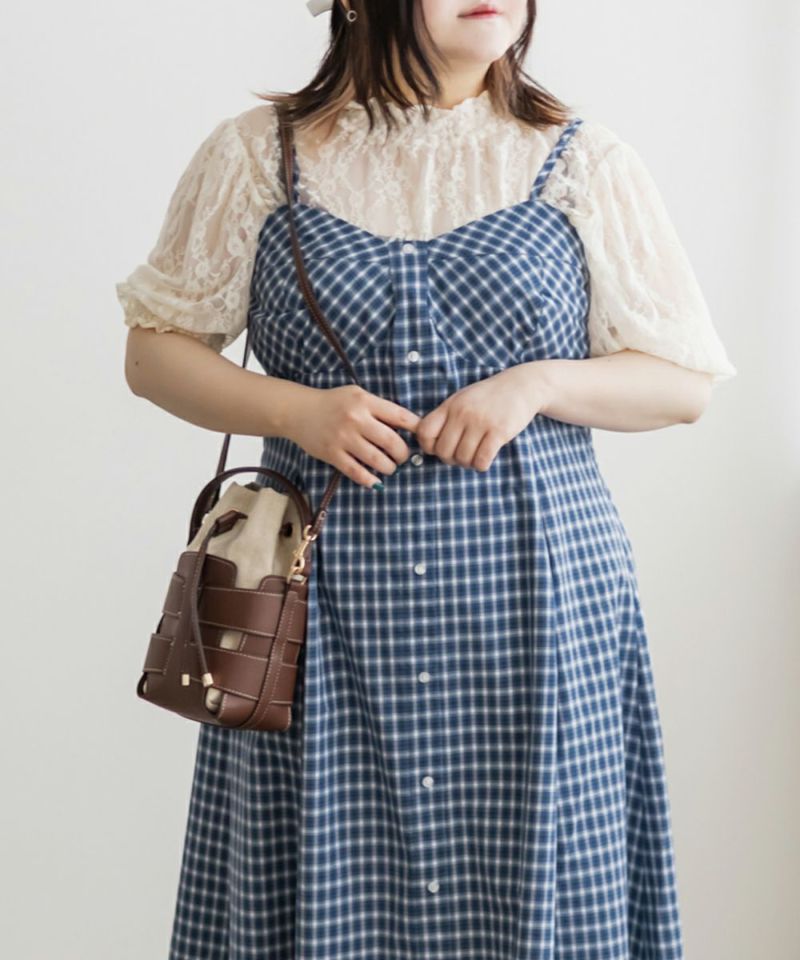 LLサイズを着用しましたが、着心地はちょうどよく、程よく身体のラインを拾わず安心感のあるサイズ感でした◎肩ひもはアジャスター付きで長さ調整できるので、低身長さんでもバランス良く着こなせるのが嬉しいポイント♪ウエストは自然にくびれて見える構築的なディティールでスタイルアップ見えも叶いました!フロントのボタンデザインが縦ラインを強調してくれるから、キャミワンピでも大人っぽく仕上がります。コルセットっぽい胸元のデザインが今っぽく、大人フェミニンに着こなせます♪トレンド感のあるストライプとチェックの展開で、あわせるアイテムによってカジュアルにもガーリーにもなれちゃいます!インナーを変えれば季節を問わず着回せる万能アイテムです♪