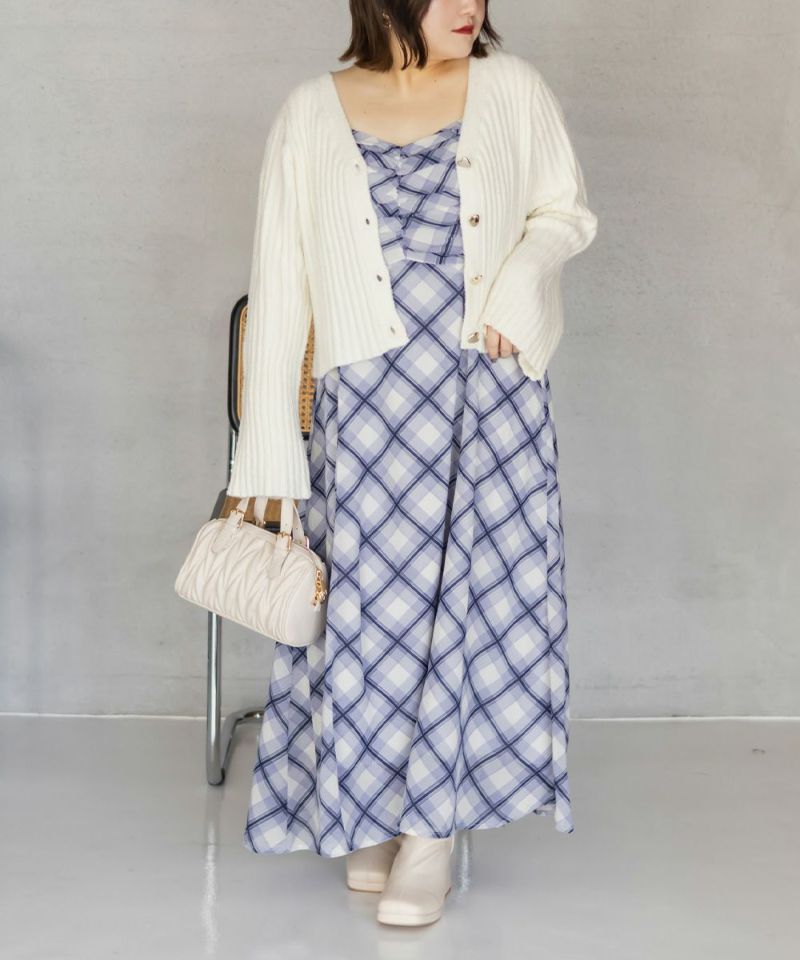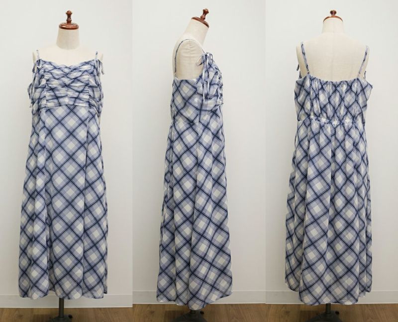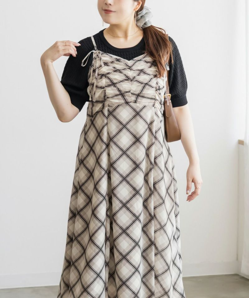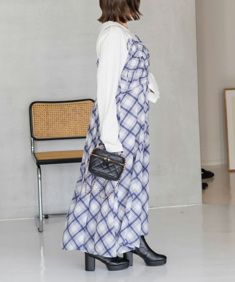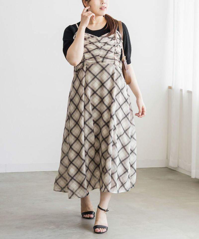 3Lサイズを着用して、身幅やウエストまわりもほどよくゆとりがあり、リラックスして着られました◎すっきりとしたシルエットだけど綺麗に広がるデザインが体のラインを拾わず、動くたびに軽やかに揺れてとても華やか♪シフォンの透け感とさりげないチェック柄が、大人の甘さをプラスしてくれます!肩紐の長さ調整ができるので、好みの丈感に合わせられて安心感も◎Tシャツやブラウスを重ねれば、ロングシーズン着回せそうな優秀アイテムです!