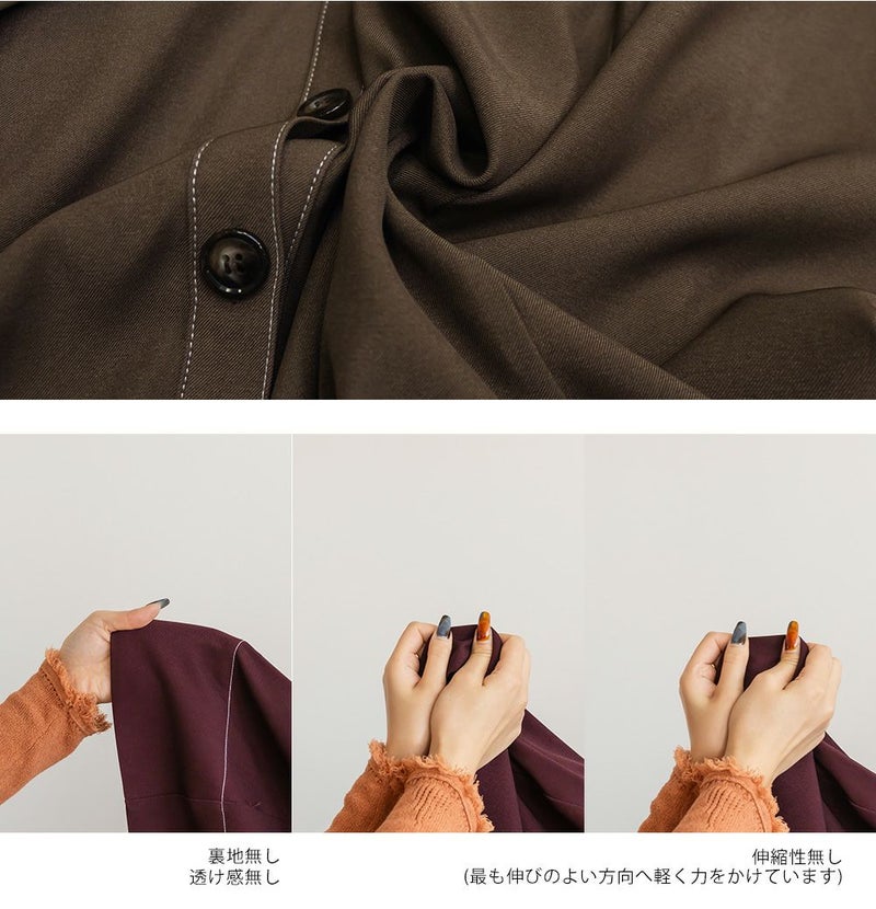 ボディラインを拾いづらい程よくしっかりとした布帛生地。カジュアルにならずに上品な素材感なのでこなれたシーンにも使える。