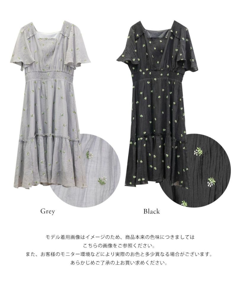3Lを着てちょうどいいサイズでした。花柄の生地が可愛いのもありますが、派手ではないけど洗練されたデザインになっていて、細かいところまで可愛いです!胸元が見えないけれどすっきりとしたネックデザインと、ひらりとしたフレア袖が上品に着やせ効果をプラスしています。ウエストシャーリングで着心地が楽なのも嬉しいです!大人っぽいけどフェミニンになれる、他にはないワンピースです♪