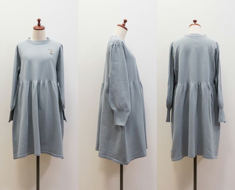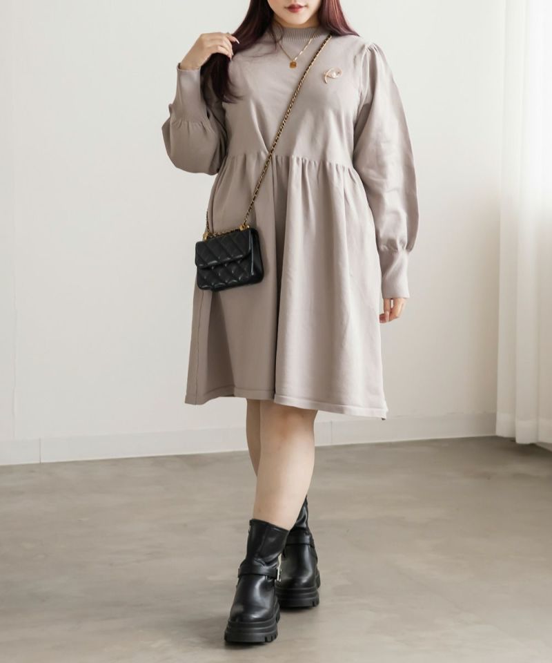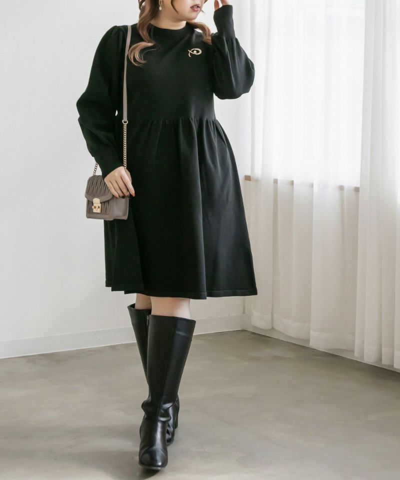 3Lサイズを着用してちょうどいいサイズ感でした。伸縮性があって着心地が良いけど程よくハリがあってボディラインも拾いづらい生地感なのが嬉しいです◎スポンジニットなのでとっても軽いのも魅力!首元はプチハイになっていて女性らしい雰囲気です。お腹やお尻のシルエットが出にくいフィット&フレアシルエットで、スカートもミニ丈になり過ぎない膝丈なので大人っぽく着られます。ブローチは大人っぽいデザインでカジュアルになりすぎず大人かわいく着れるワンピースです♪