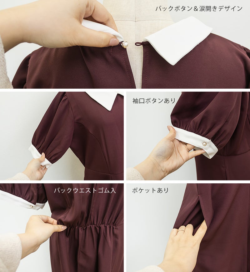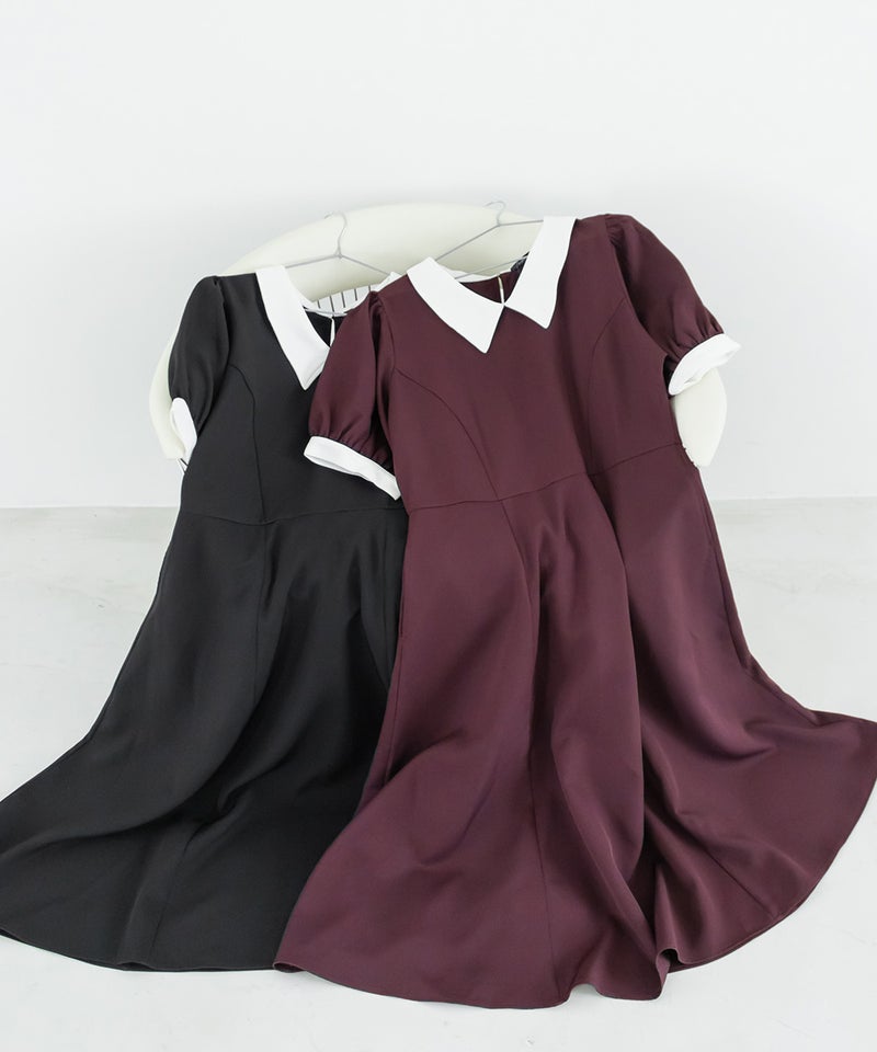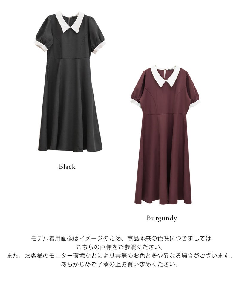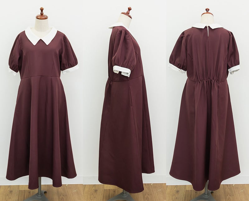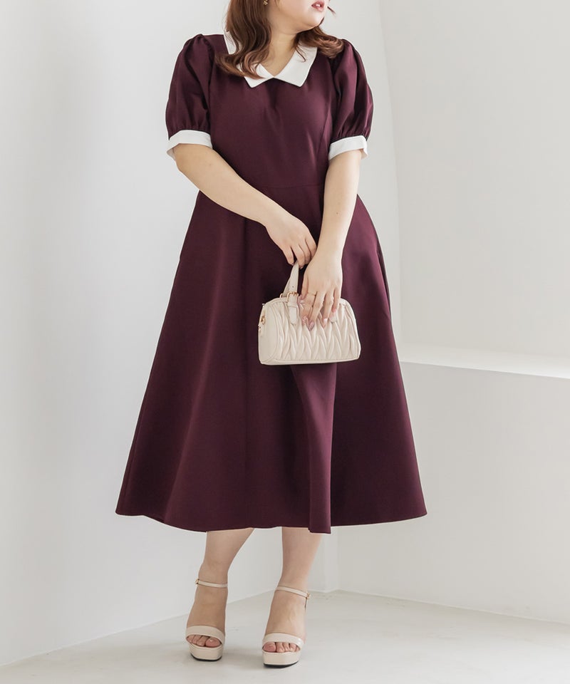 3Lを着て丁度いいサイズでした。王道のフィット&フレアでシルエットの綺麗なシルエットだから着るだけで着やせできます♪襟と袖が配色になっていて、上品でフェミニンな雰囲気に着こなせます!襟はほどよくあいていて、窮屈感がないのも嬉しいです。ポケット付きだからお出かけにも便利です◎シンプルだからこそ洗練されたスタイルになれるワンピースです!