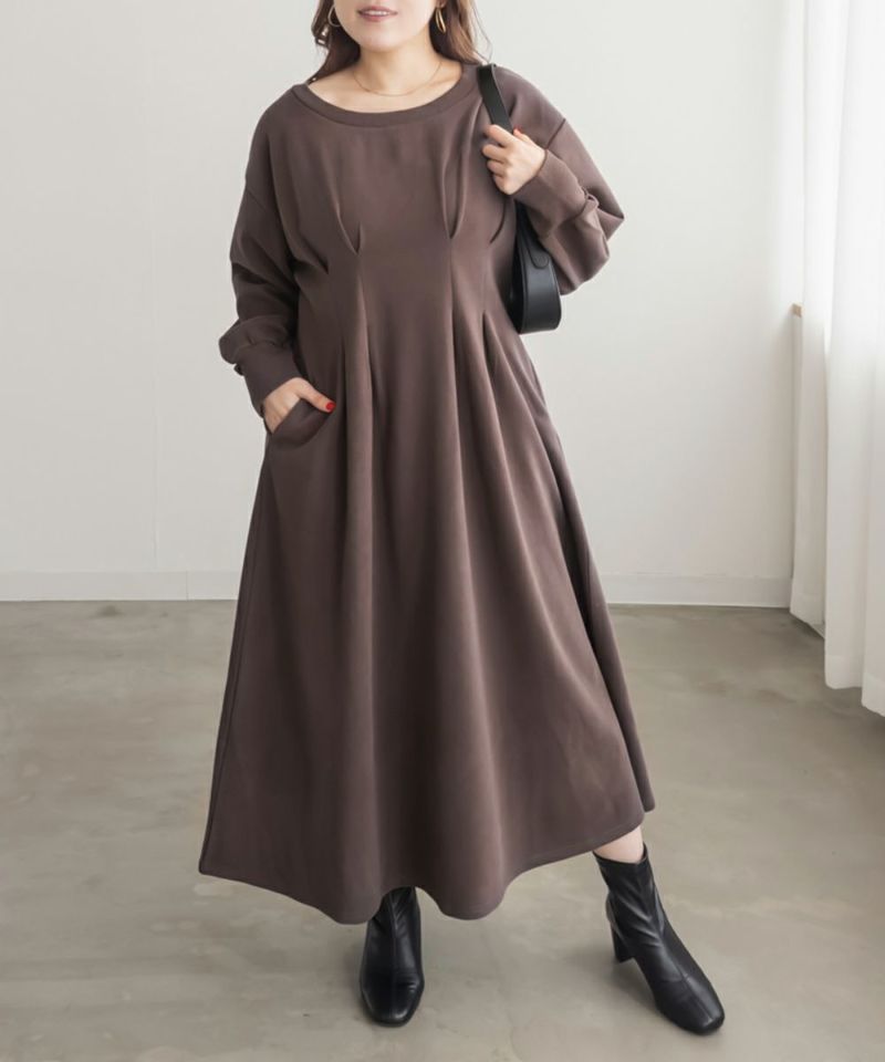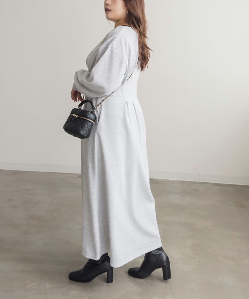 3Lサイズを着てちょうどよく楽な着心地でした!動きやすいスエット素材で着脱も楽々◎程よくハリのある生地なのでボディラインを拾わないのが嬉しい♪ウエストにタックが入っていて、フィット&フレアシルエットになってスエットだけど女性らしく着られます。ブーツやスニーカー、小物使いを変えるだけで違った印象に変化できます。頑張りすぎないおしゃれな雰囲気のスタイルをしたい方にぜひおすすめしたいです!