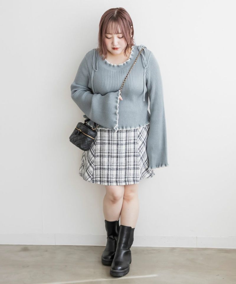 LLを着てちょうどいいサイズでした。柔らかくて着心地の良いリブニットで、身体にピタッとフィットしないくらうのゆとりがあります。襟はゆったりとあいていて、肩には細目のリボンが大人っぽくついています。袖は、正直なところお鍋を食べたりは難しいデザインですが、腕が長く、手元が女性らしさたっぷりな印象になれるおしゃれ可愛いデザインです◎手元に向かって広がるから二の腕を強調しないのも嬉しいです♪少し短めの着丈だから、裾を出した状態でバランスよく、着られて、スタイルが良く見える1枚です!