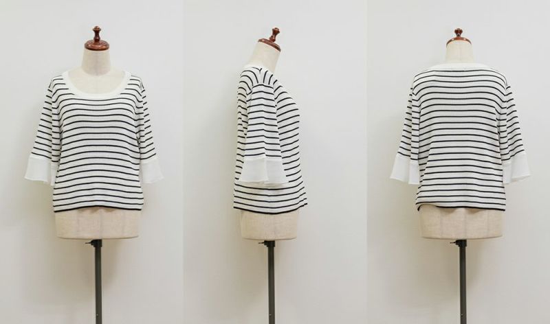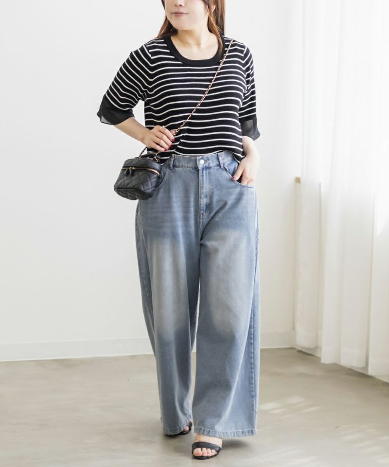 3Lを着てちょうどいいサイズでした。さらりとした夏向けのリブニットで、着ていても暑くない素材です◎伸縮性がしっかりあるのでストレスフリーな着心地で、顔回りも二の腕もすっきりと見えるデザインなのも嬉しいです!ボーダーはカジュアルになりがちな印象もあるけど、このニットは上品に、女性らしく着こなせました♪無地もあるので、好みのデザイン・雰囲気で選んでみてください◎パンツ、スカート、ワンピース、アイテムどんなアイテムともコーディネートしやすい便利なトップスです!
