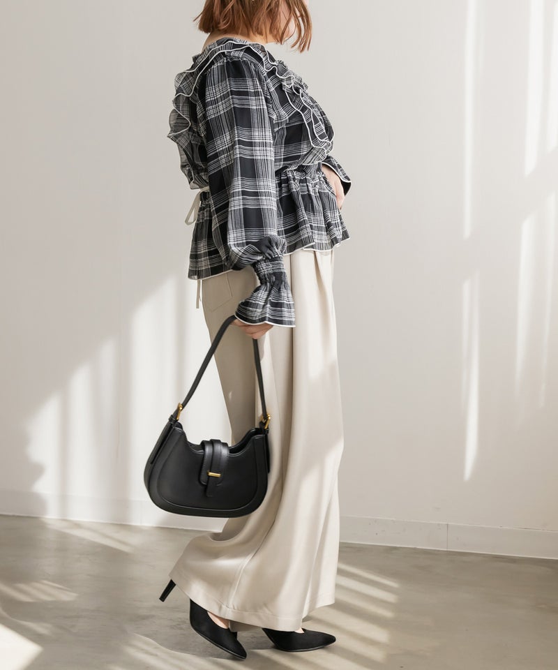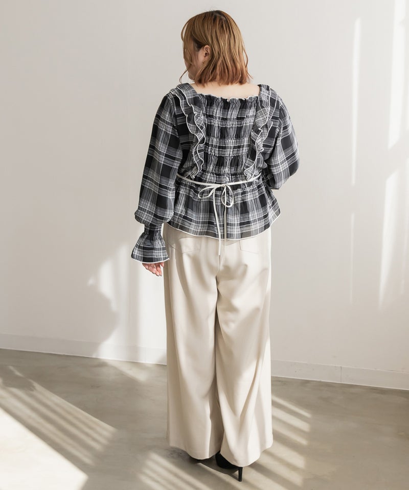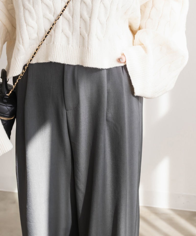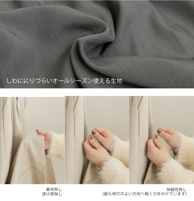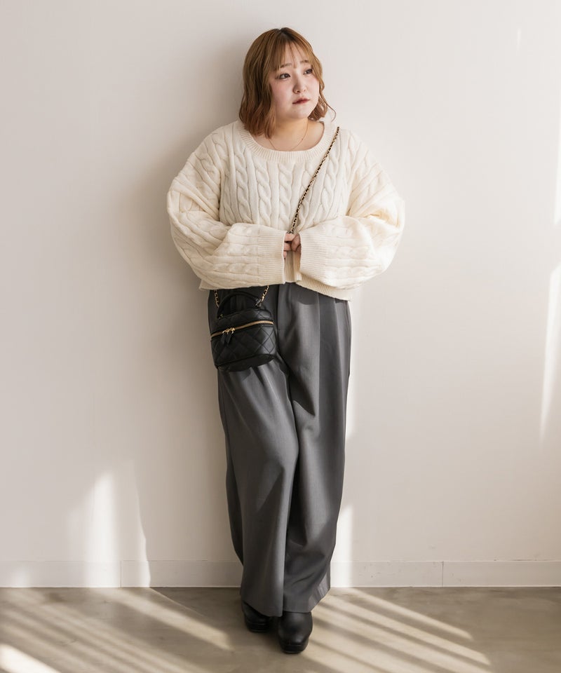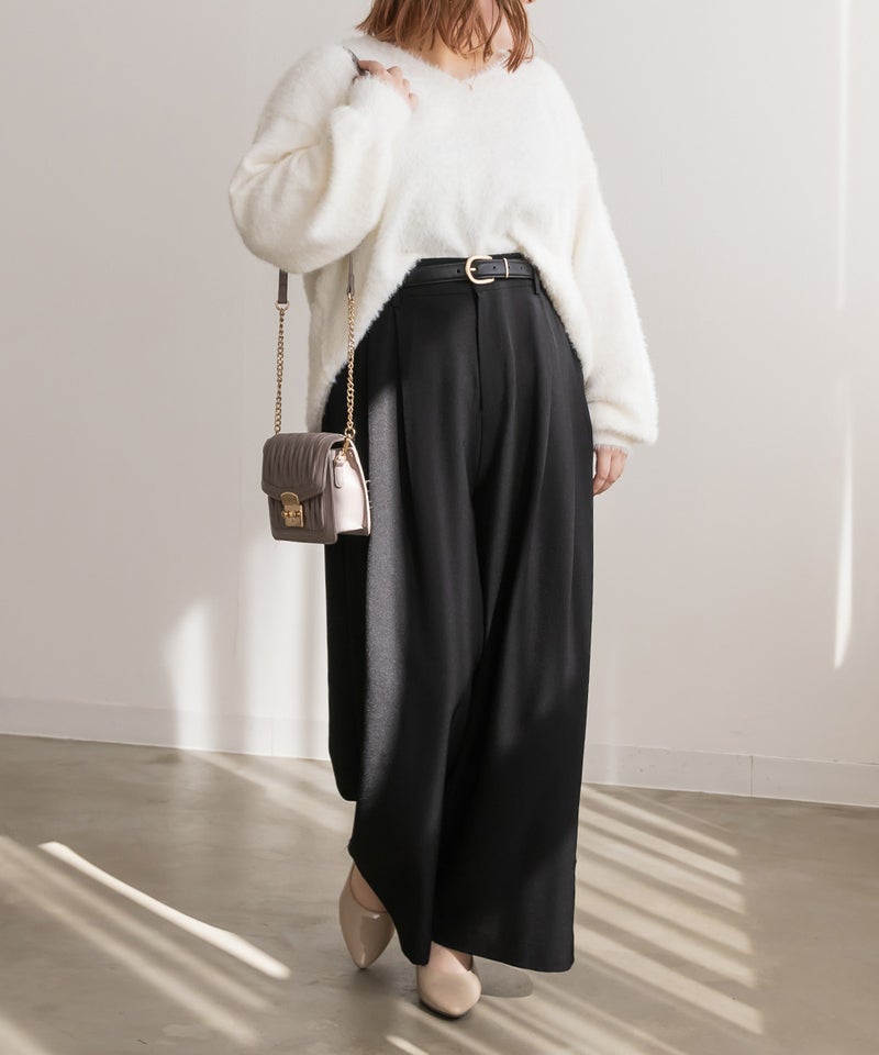 LLを着用してちょうどいいサイズでした。ゆとりがありつつすっきり見えるシルエットで、楽ちんな着心地です!ワイドパンツだけどフェミニンなスタイルになれるアイテムで、可愛い系のトップスとも、シンプルなトップスとも相性がいいのでおすすめです。オールシーズン使える便利なワイドパンツです!