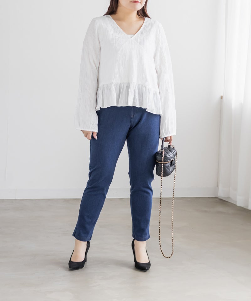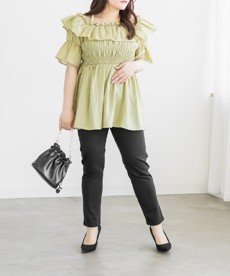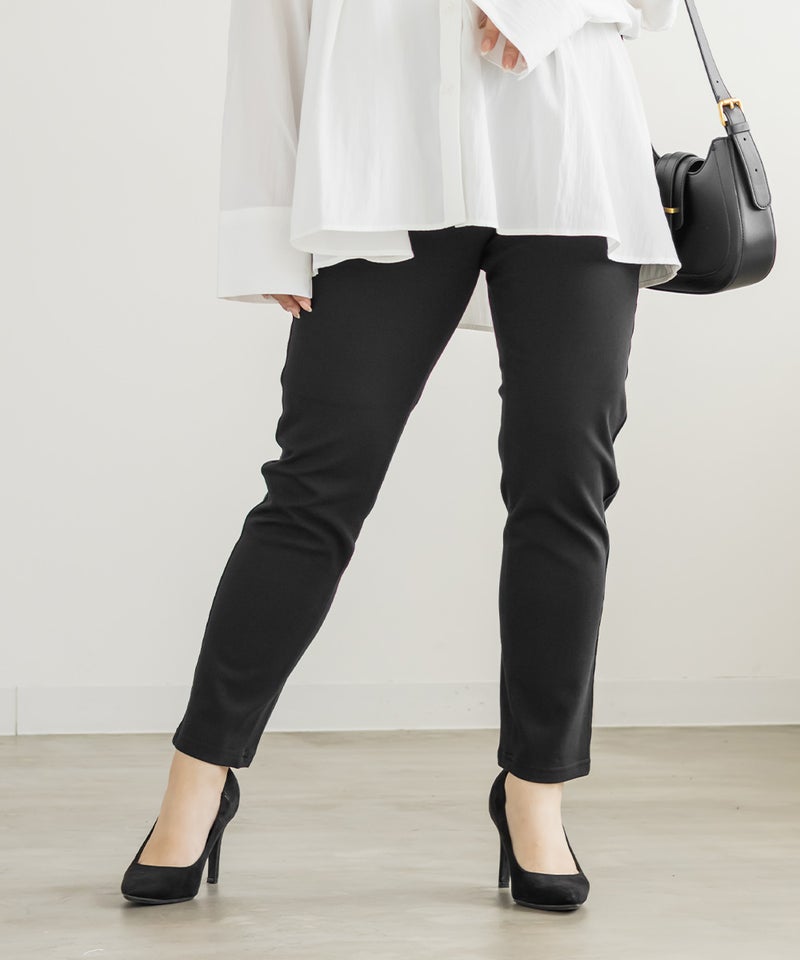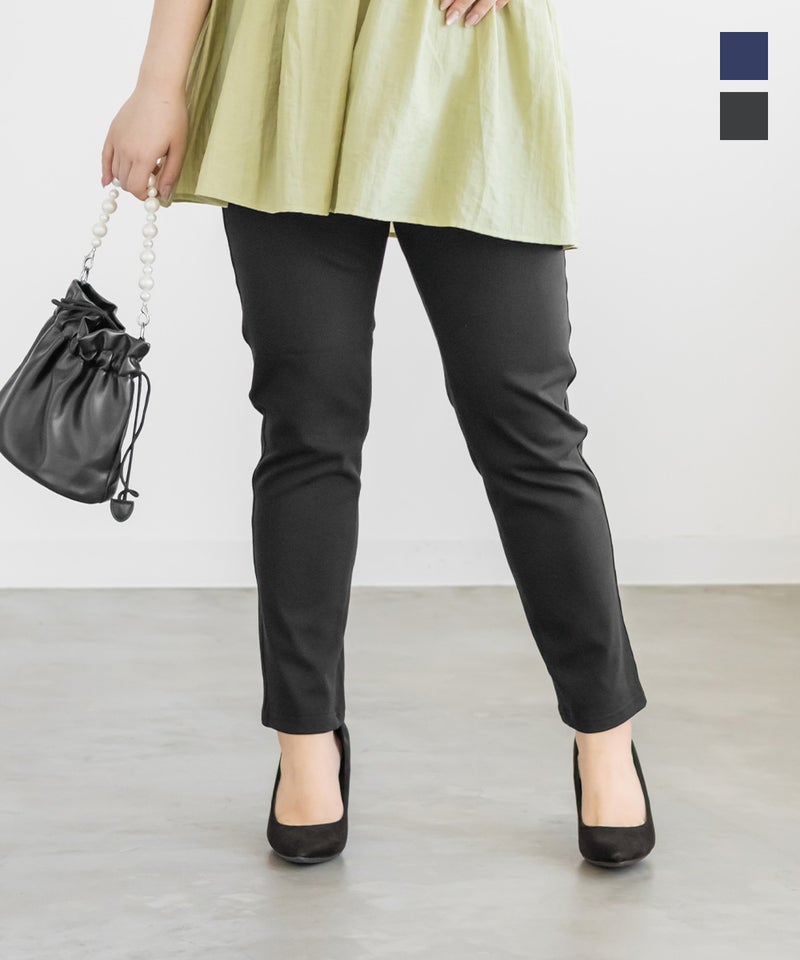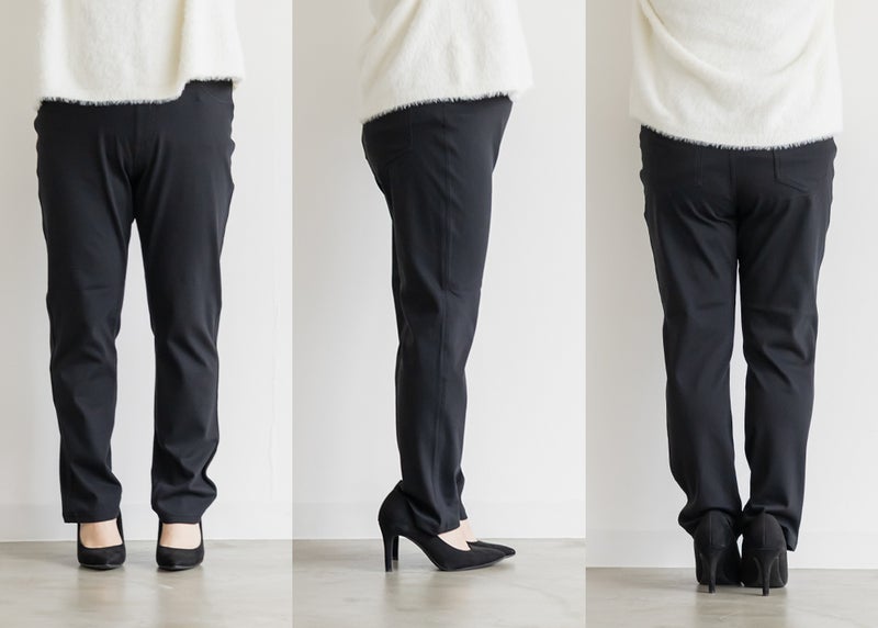 LLサイズを着て丁度いいサイズでした。ウエストはゴムで全方向のびるストレッチ素材が動きやすく、ノンストレスな着心地です◎程よくフィットしてくれるレギパンで窮屈感はないけれどすっきり細見えできるパンツでした!定番カラーで合わせやすく、ロングシーズン着用できます。