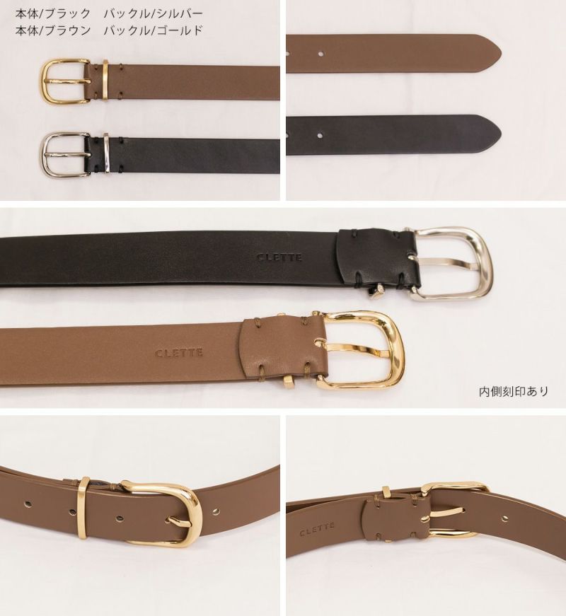 フリーサイズを着用しました。もう少し細くできる穴の位置で着用して、大きくするのはまだまだ余裕がありました!程よくしっかりとした素材なのに、締めやすいのが◎スカート、パンツ、ワンピースなどアイテムによって穴の位置は変えられるのでちょうどいい着心地になれます。裏側にCLETTEの刻印が入っているのも特別感があって可愛いです!ゴールドとシルバーのバックルがそれぞれのカラーにマッチしていて、シンプルなのにアクセントになるデザインです。デニムやワンピースのウエストマークにも使いやすく、1本持っておくと着こなしの幅が広がります!オフィスなどきちんとしたシーンにもお勧めで、どんなアイテムにも合わせられるベルトはワードロープに加えたい1本です♪