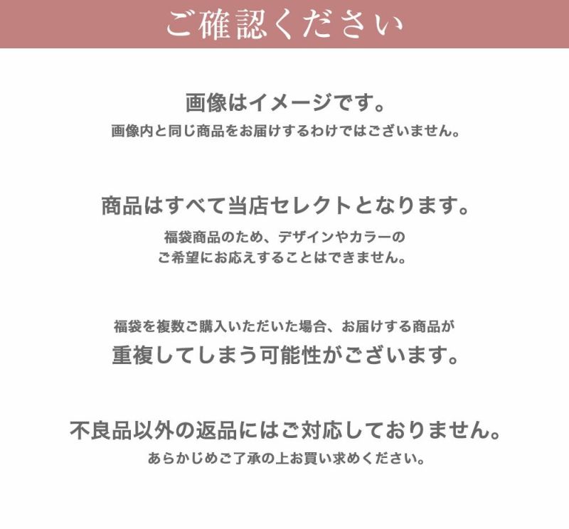福袋なので柄は選べないとありますが、届いたお品はシックでかっこよかったり、かわいいものだったりと素敵なものばかり、大満足です!