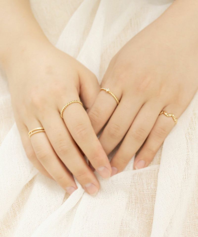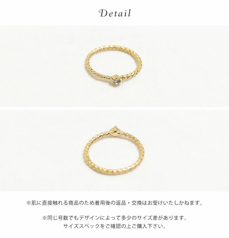 人差し指にはめて窮屈感なくゆとりのありではめることが出来ました◎ワンポイントのストーンがさらっとこなれた雰囲気で可愛いです。ねじれのデザインで高級感があって、どんなコーディネートにも合うと思います!