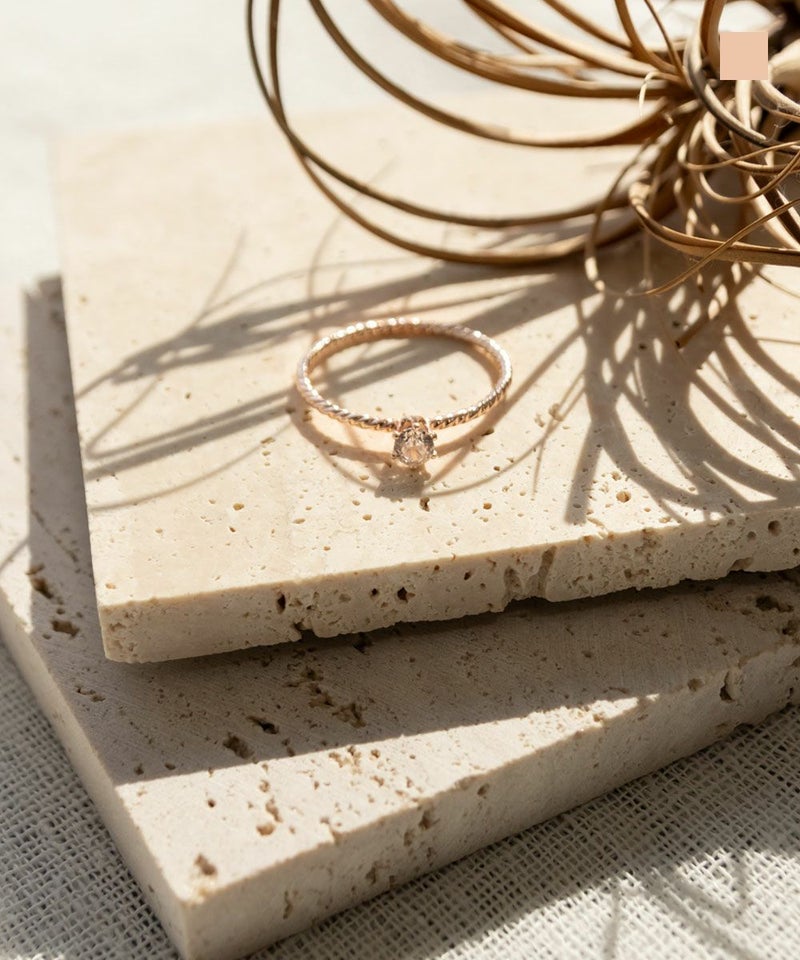 きらっと存在感のあるジュエルストーンがコーデのポイントになる◎肌なじみの良いピンクゴールドで大人っぽいコーデが完成します!リング自体は華奢なので繊細な雰囲気もあって、高見えすると思います♪フェミニンなコーデにはもちろん、カジュアルなコーデにポイントとして取り入れていただきたいです。