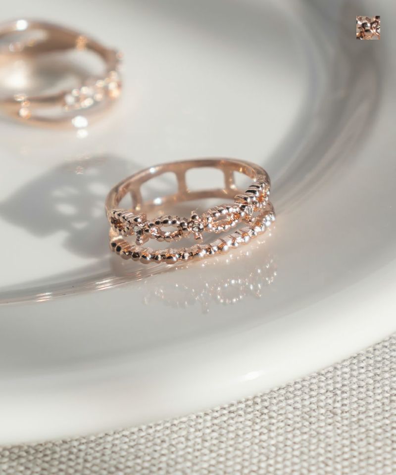 人差し指にはめて程よいサイズ感でした。サイズ表を確認してからご購入をお勧めします。華やかなストーンと繊細なデザインが上品で女性らしいアイテムで、デイリー使いから特別なお出かけにも使えてたくさん活躍するリングです◎手元が寂しいとき華やかに飾ってくれるのでスタイリングにプラスしたいアクセサリーです。大きめリングでなかなかないデザインなので嬉しいです♪