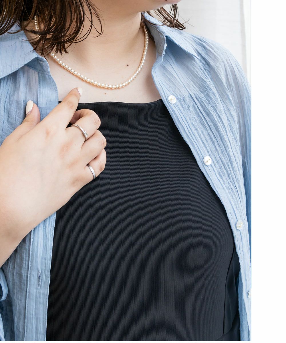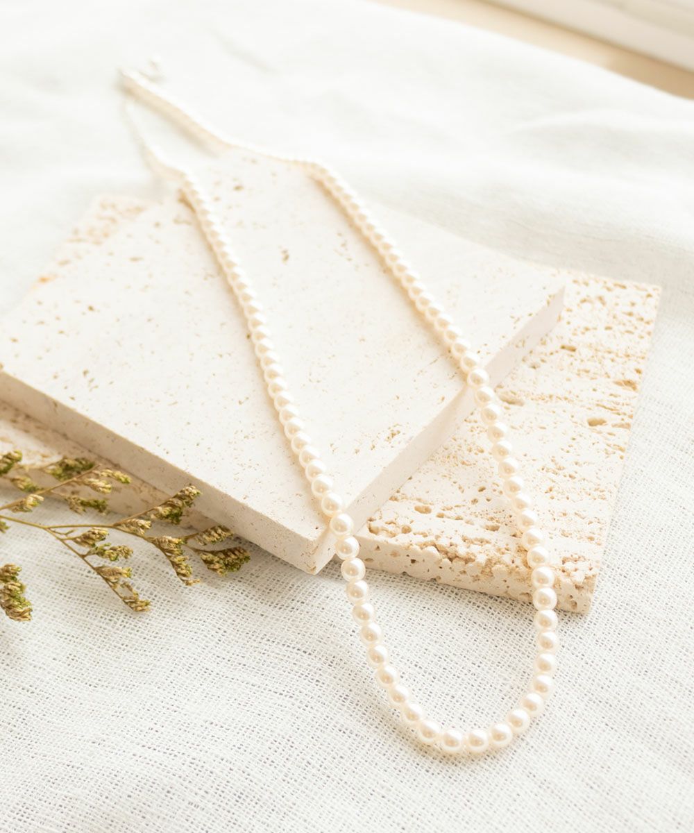 ワンピースなどキレイめのスタイルにはもちろん、カジュアルなニットやシャツにも合わせやすい小ぶりパールのネックレス。シンプルなチェーンネックレスとの重ね付けもおすすめです!普通の長さより少し長めに作られているので、今までネックレスの長さが短くてアクセサリーを楽しめなかった方にも是非チャレンジしてほしいです◎