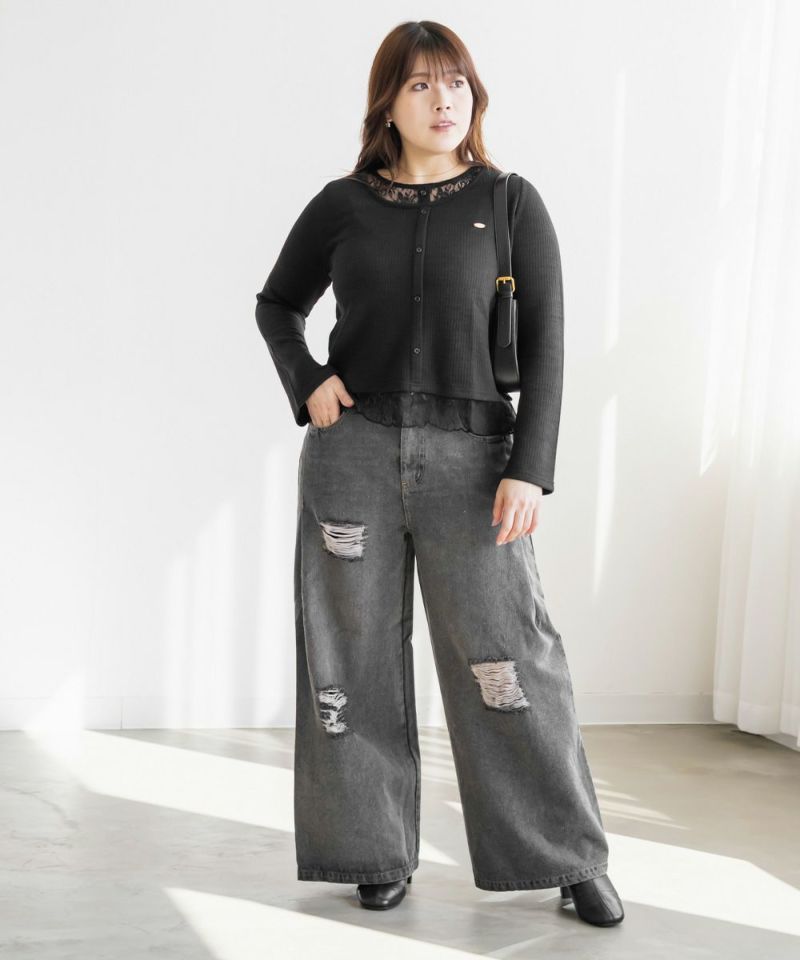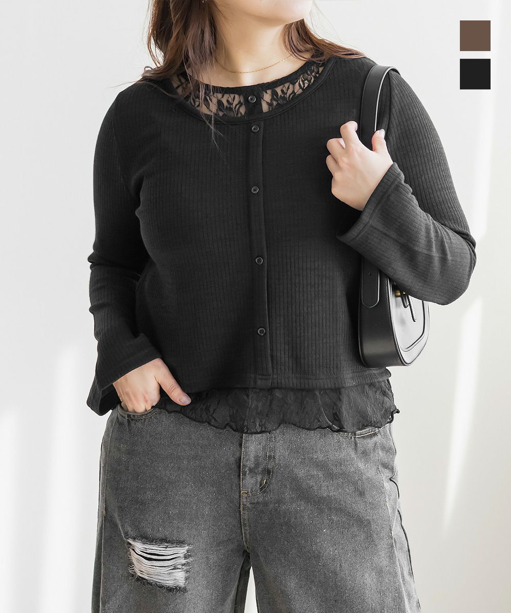 3Lサイズを着用して丁度良い着心地でした!軽く伸縮性のあるカットソー生地なので窮屈感なくノンストレスでした。レースを重ねたドッキングデザインが簡単にスタイリングを完成させてくれる優秀トップスです。 着丈はちょうどよく裾出しで着て可愛い1枚です♪1枚で着るだけで今っぽくなれて、シンプルなスカートやパンツと合わせて大人カジュアルに着こなせます!