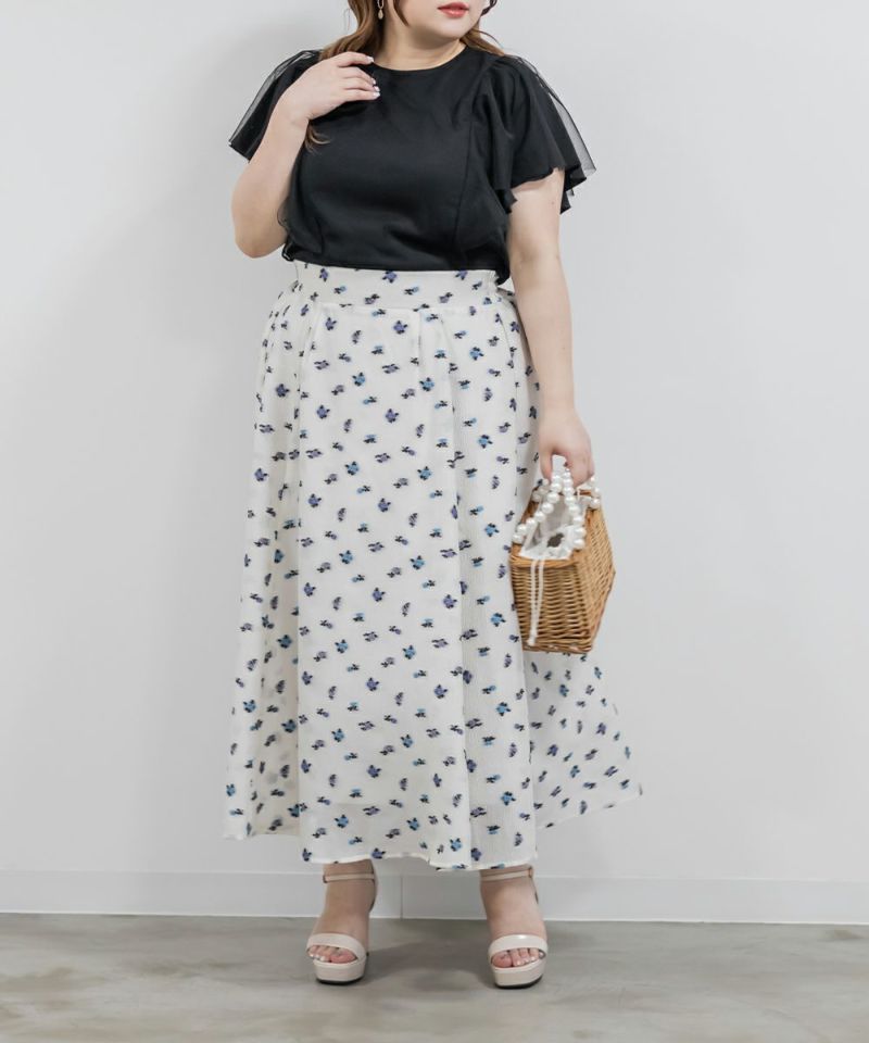 3Lサイズを着用して、ちょうどいい着心地でした◎ふんわり重なったチュールが華やかで、着るだけで気分が上がる一枚です♪身頃は柔らかなカットソー素材なので、肌あたりが優しくストレスフリーなのもポイント。お袖のラッフルデザインが二の腕をカバーしてくれて、すっきり着やせした印象に。シンプルなボトムと合わせるだけでコーデが決まる、主役トップスです!