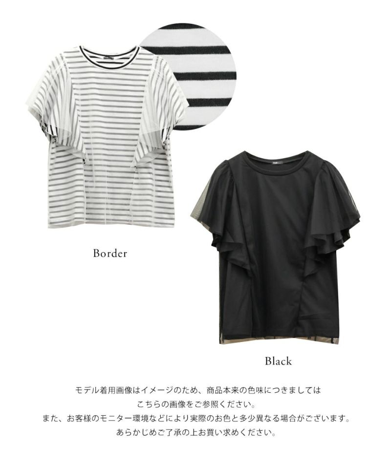 生地感 一般的なカットソー素材に透け感のあるチュール素材が重なっています。