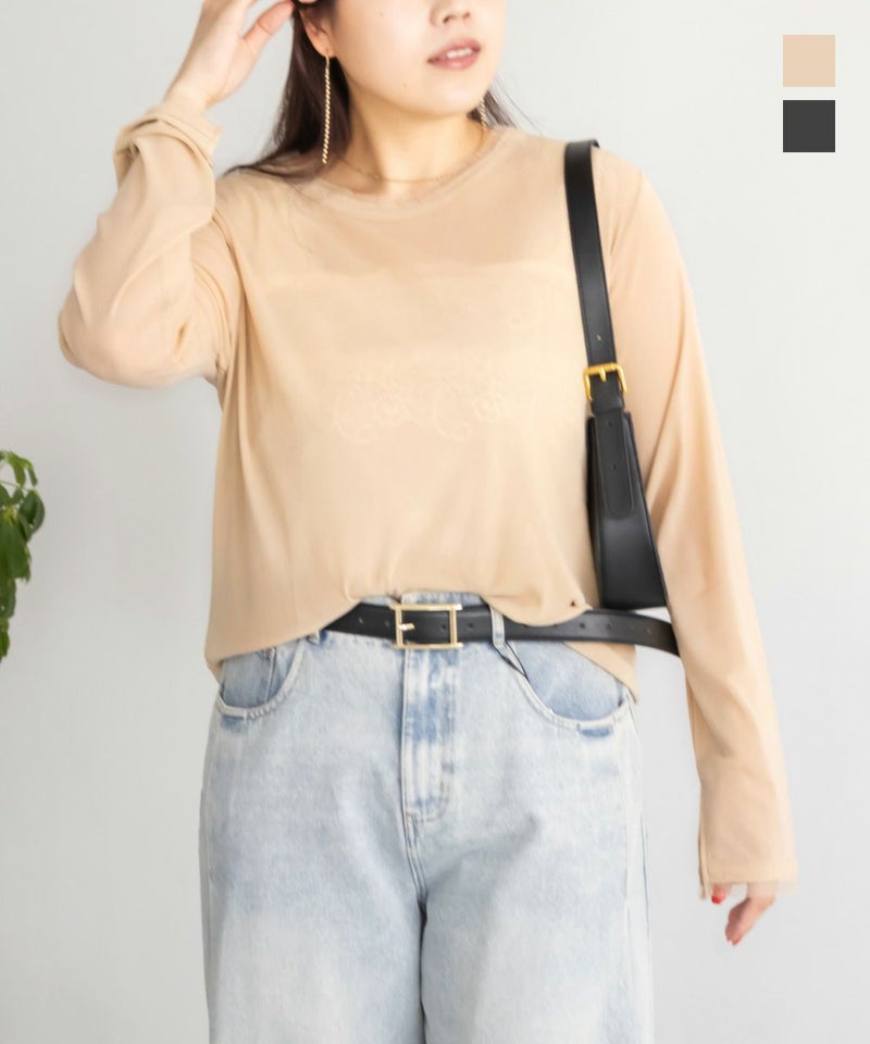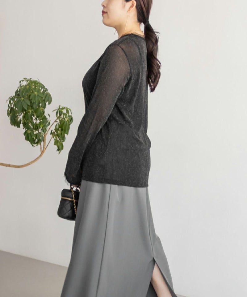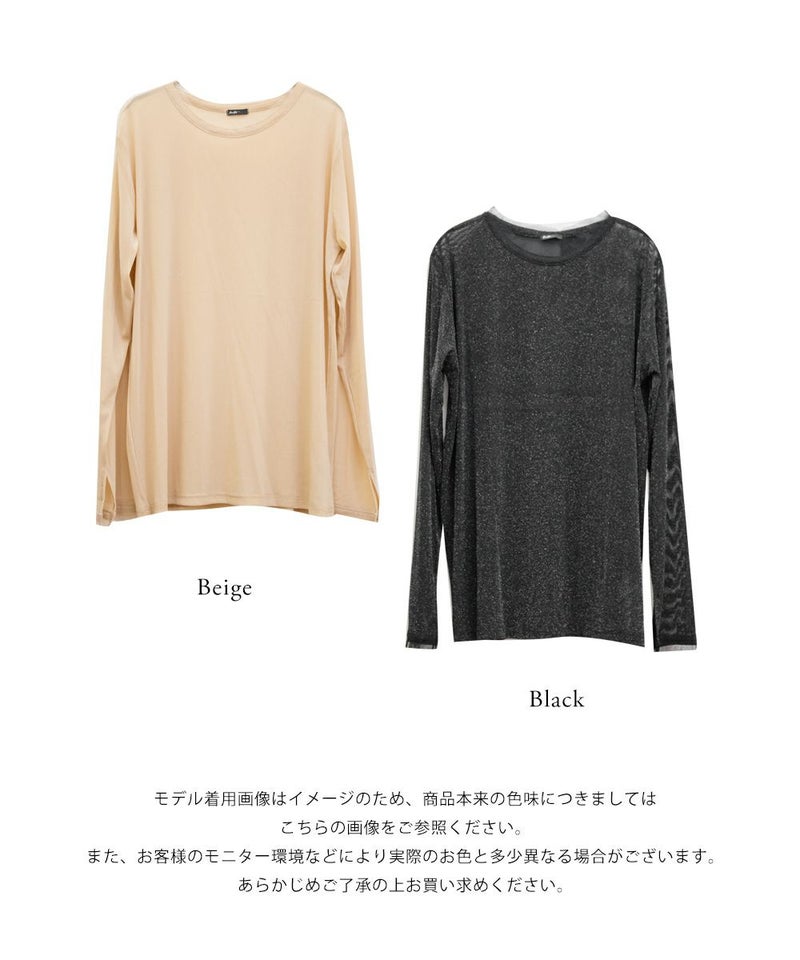 3Lサイズを着用しました。着用感はちょうどいいです。伸縮性のあるシアー生地に柔らかなチュールを重ねたデザインで、ほんのり透け感とラメのきらめきが華やかさをプラスしてくれます♪体のラインを拾いにくいシルエットなので安心感があり、デニムやスカートと合わせるだけで旬なレイヤード風スタイルに◎普段のコーデを格上げしてくれる一枚です。薄手のトップスは長いシーズン使えるのでバリエーション違いで集めたいです!