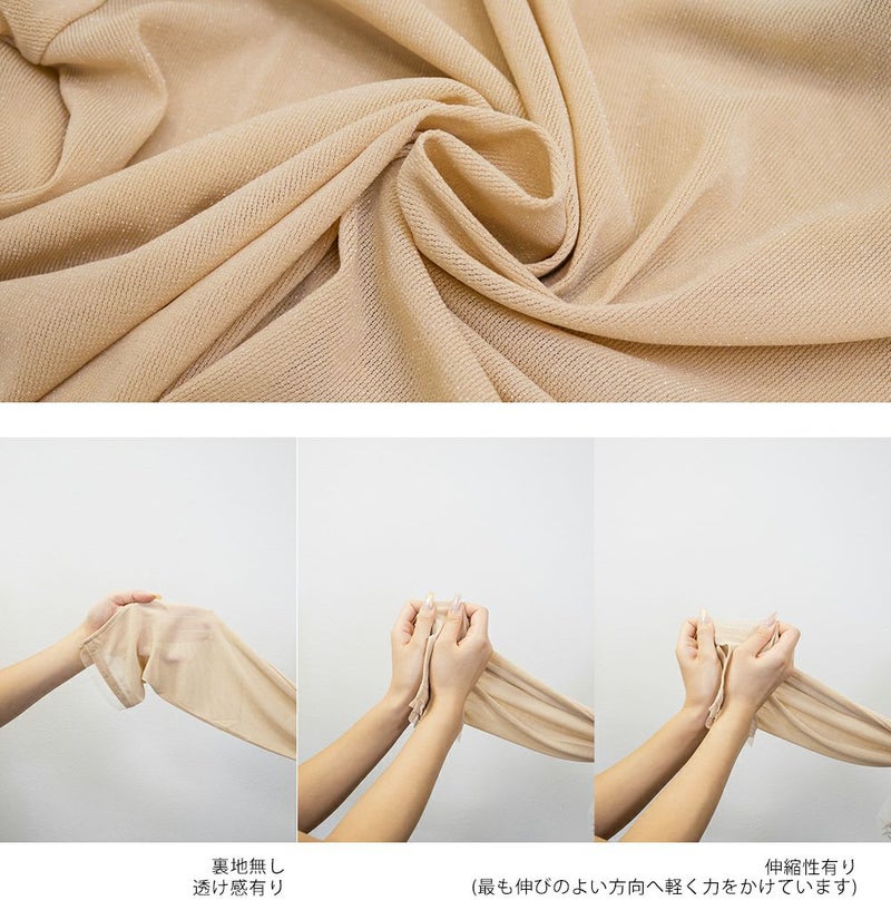 裏地・透け感・伸縮性 裏地無し、透け感有り、伸縮性有り