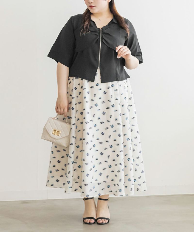 フロントジップ シャツ クレット プラスサイズ 大きいサイズ 3L 4L 半袖 春夏 フロントジップシャツ