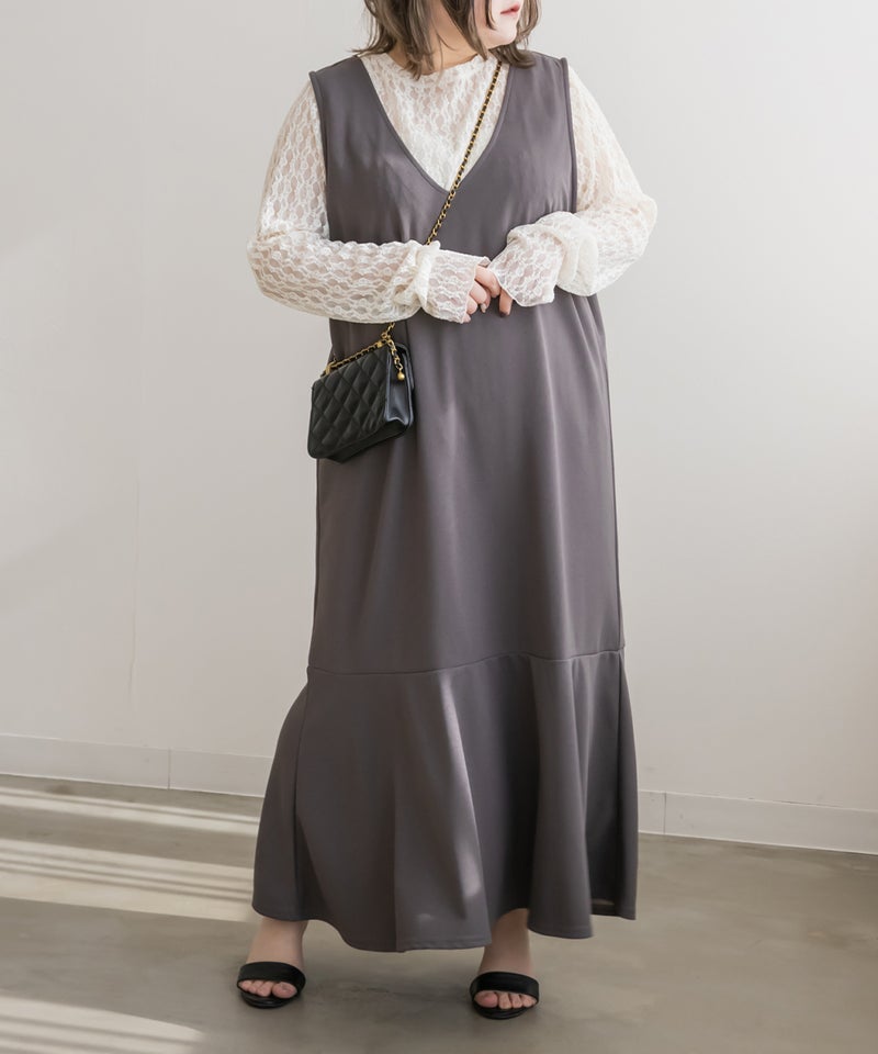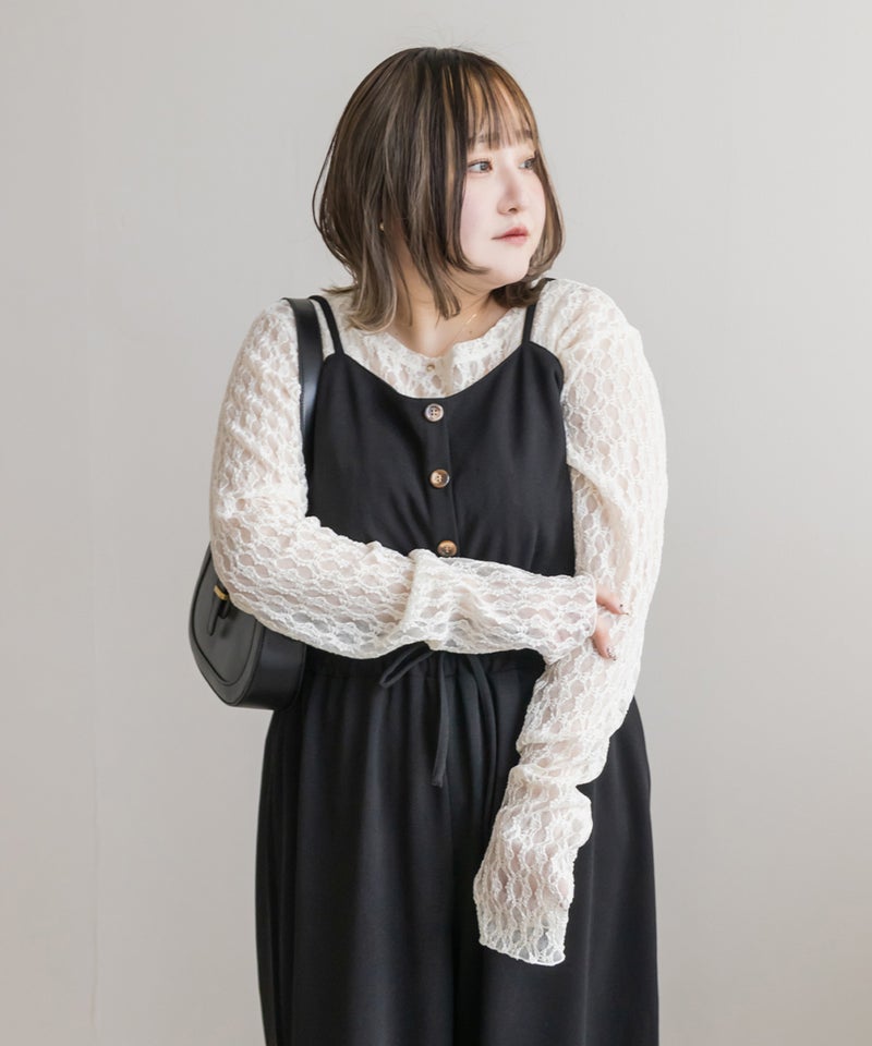 3Lサイズを着て、ちょうどよい着心地でした。少し伸縮性があって着用感も問題なかったです!総レースのデザインが、フェミニンさを引き立てるプルオーバーです。トップスとして1枚で着てもトレンドコーデにピッタリ◎カジュアルなデニムと合わせてもきちんと感があり、ワンピースなどのインナー使いもおすすめです◎普段使いにもおしゃれに着こなせるので、重宝する一枚です♪
