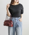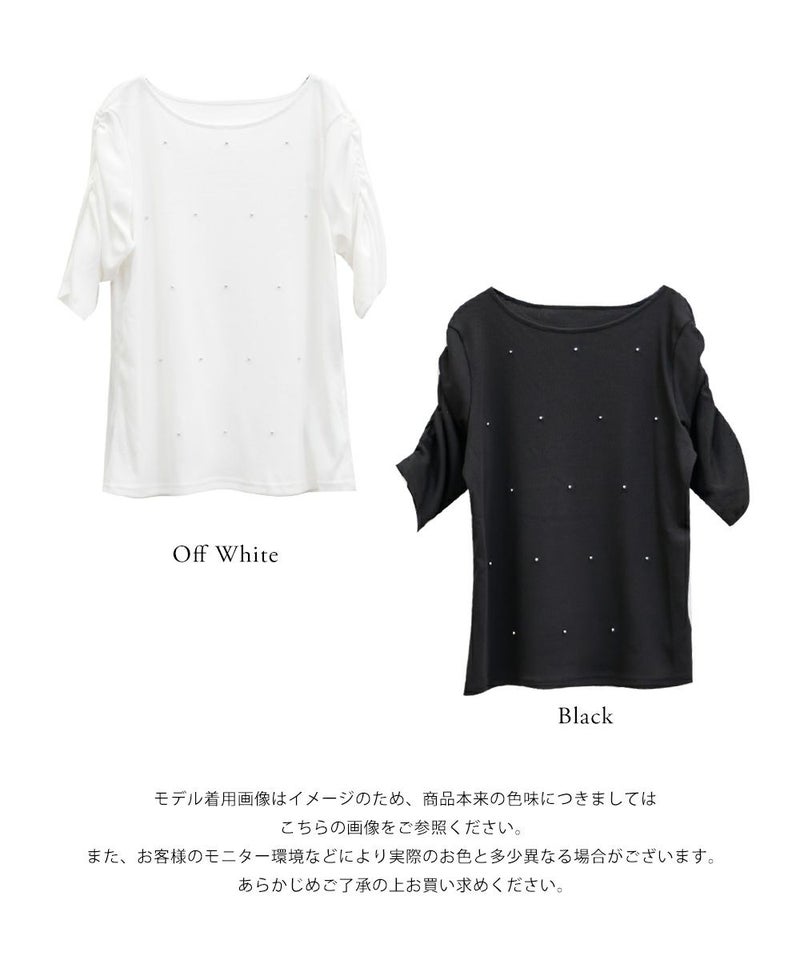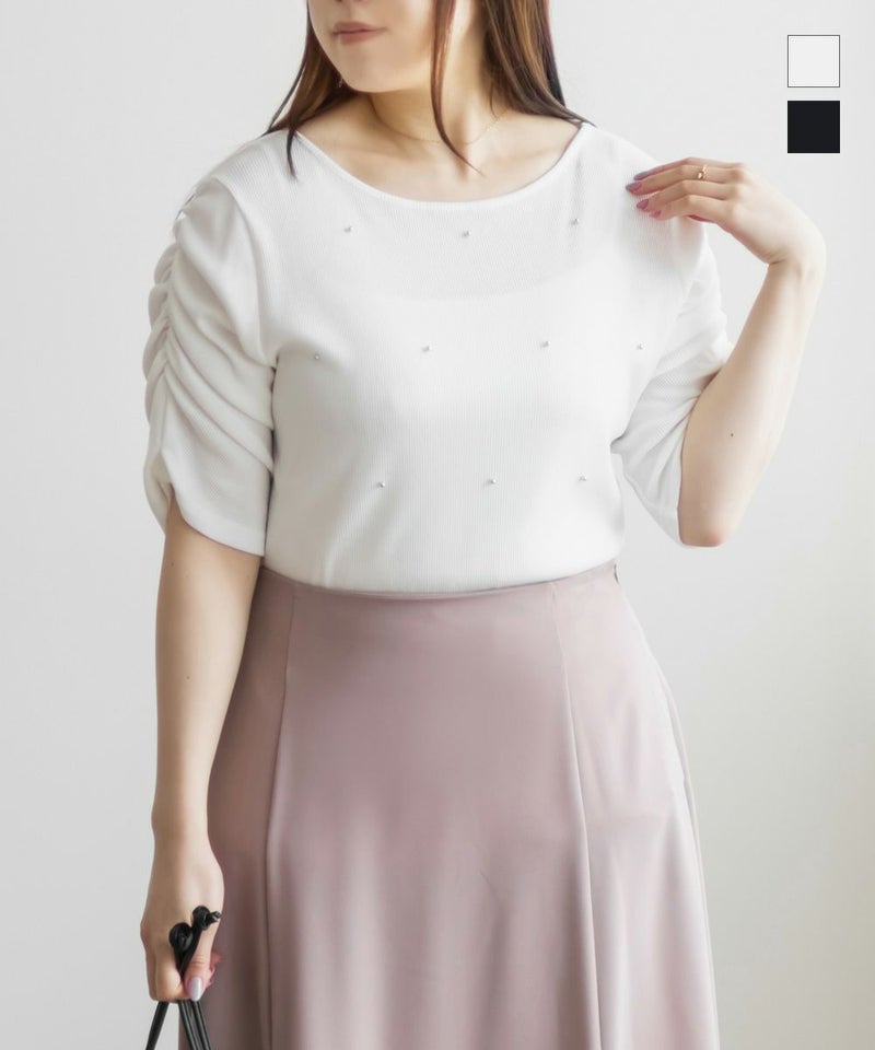 ビーズ使いパワショル半袖リブプルオーバー 大きいサイズ クレット プラスサイズ CLETTE 3L 4L ビーズ使いパワショル半袖リブプルオーバー