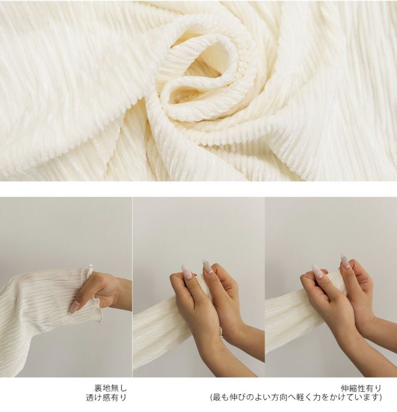 裏地・透け感・伸縮性 裏地無し、透け感有り、伸縮性有り