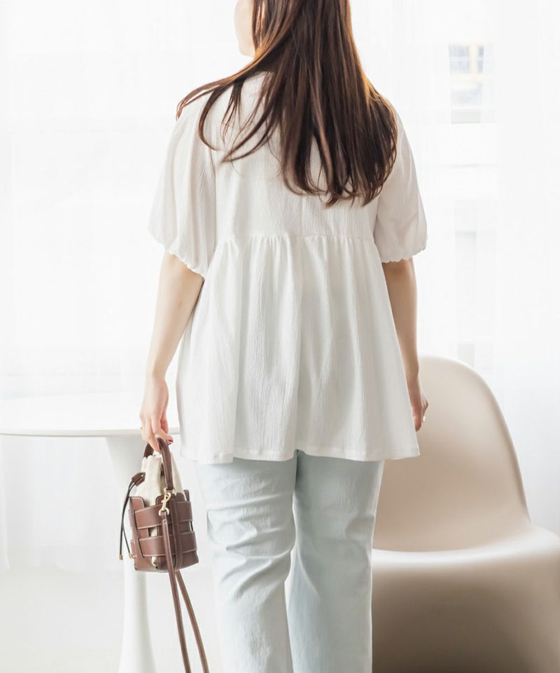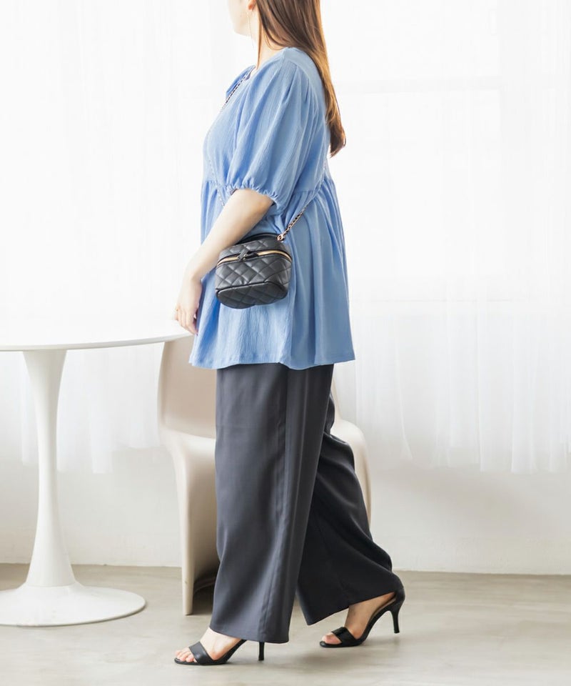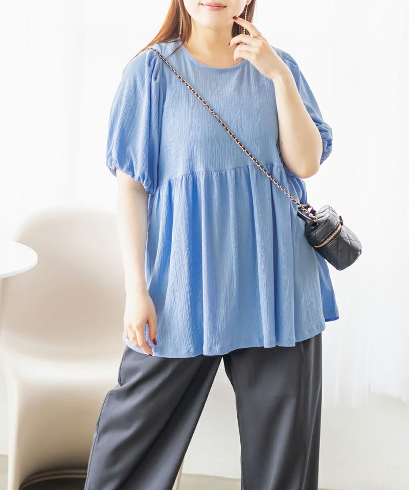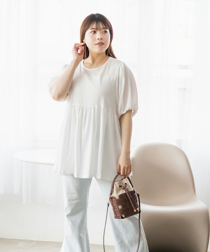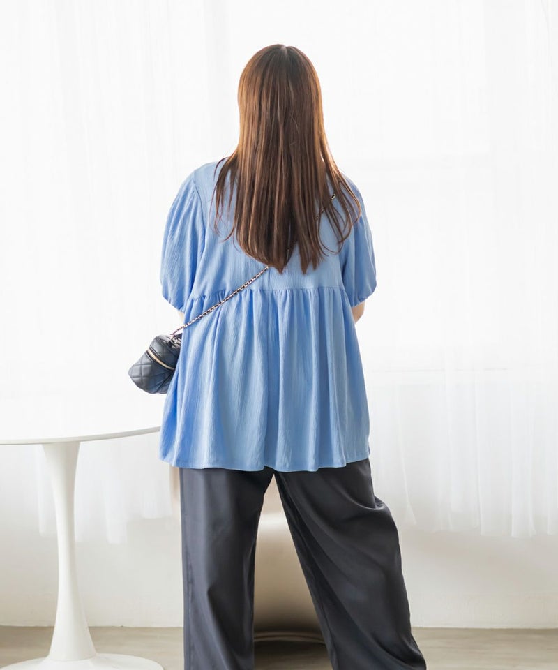 3Lサイズを着用してちょうどいいサイズ感でした。やわらかくらくちんな伸縮性のある生地で着やすいのが嬉しいです◎気になる部分をカバーしてくれるシルエットもポイントで、すっきりとしたシルエットのボトムと合わせて大人っぽくスタイリングしたい1まいです♪着丈も長めなのでお尻まですっぽりカバーしてくれます!シワ感のある生地が可愛く、涼しく着用出来てお出かけなどにお勧めです!