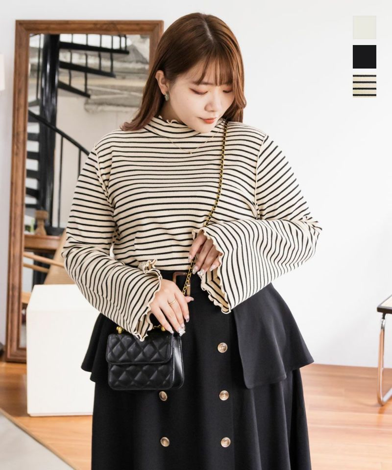 3Lを着て丁度いいサイズでした。身体にフィットしすぎないサイズ感だから、1枚でトップスとしても使えるのが嬉しいです!ワンピースのインナー使いにもおすすめなので、色々な着回しが可能◎フレアスリーブで女性らしい、大人っぽいスタイルが完成します!