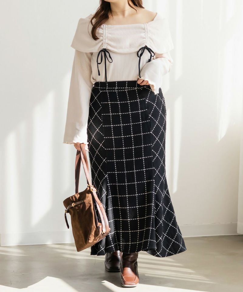 3Lサイズを着用してちょうどいいサイズでした。ネック回りが綺麗に開きながら、下着の肩紐が見えないようなデザインになっています。オフショルは苦手だけど女性らしいデザインを探している方におすすめです!リボンがアクセントになっていて、すっきりとした印象になれます◎袖もフレアに広がっていて女性らしさたっぷりです。パンツともスカートも相性のいい、大人っぽい1枚です!