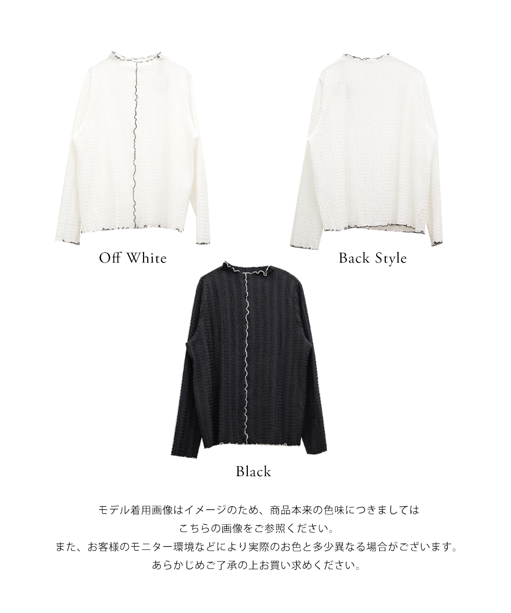 3Lを着てゆとりがありました。ぽこぽこ感のある生地が伸縮性もあってラクチンな着心地です◎配色メローデザインで甘く・子供っぽくならずにおしゃれな雰囲気で着られてメリハリのある印象です。プチハイになっているのも大人っぽくて可愛いです!ボディラインも拾いづらい生地感なのでトップスとしても着用できます。レイヤードのインナーとしても使い勝手がいいからあると便利なプルオーバーです♪