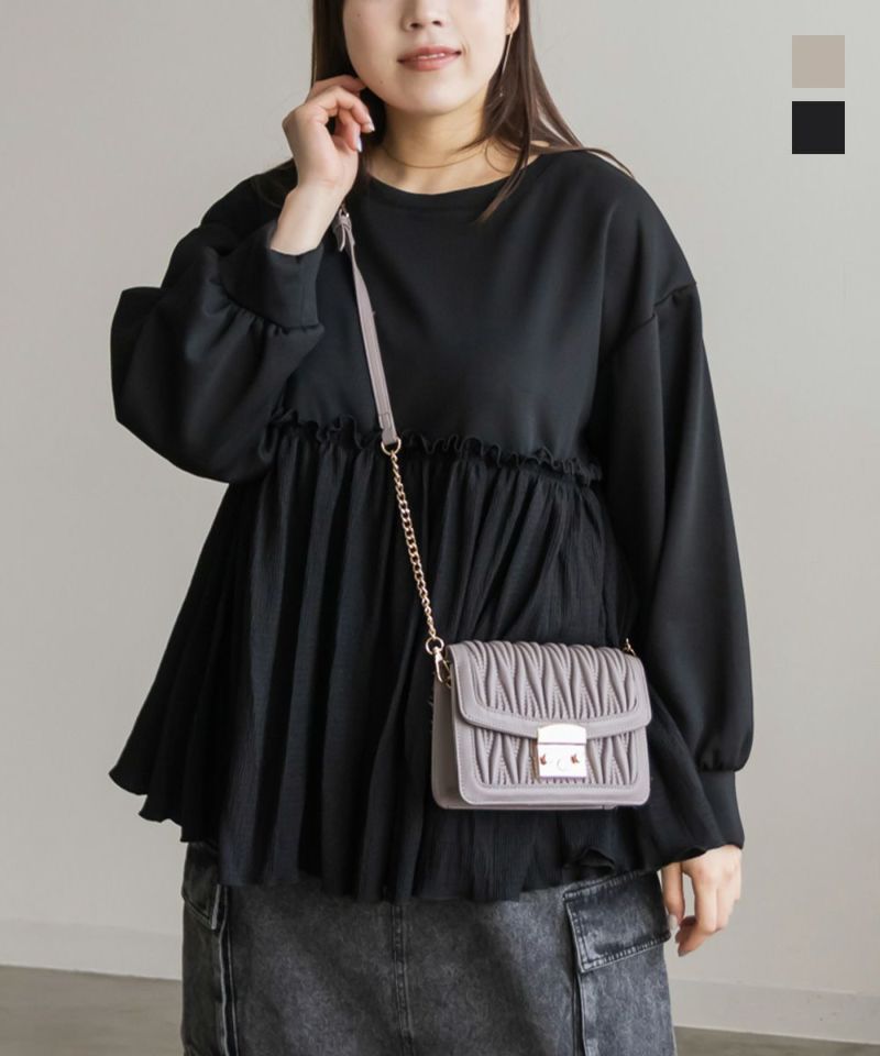 ペプラム切替プルオーバー 大きいサイズ クレット 3L 4L 5L プラスサイズ ダンボールニット ペプラム切替プルオーバー