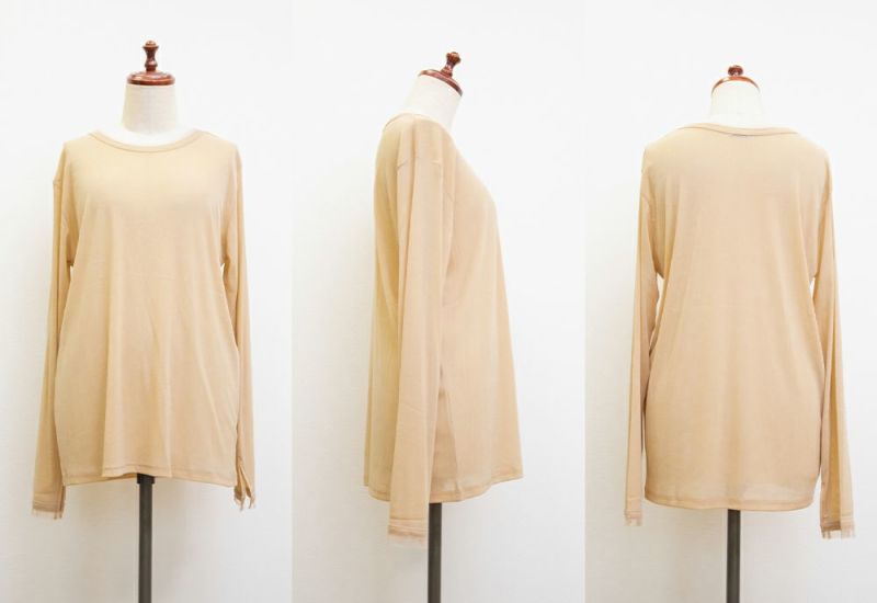 3Lサイズを着用しました。着用感はちょうどいいです。伸縮性のあるシアー生地に柔らかなチュールを重ねたデザインで、ほんのり透け感とラメのきらめきが華やかさをプラスしてくれます♪体のラインを拾いにくいシルエットなので安心感があり、デニムやスカートと合わせるだけで旬なレイヤード風スタイルに◎普段のコーデを格上げしてくれる一枚です。薄手のトップスは長いシーズン使えるのでバリエーション違いで集めたいです!