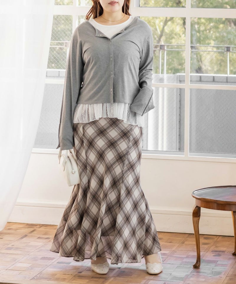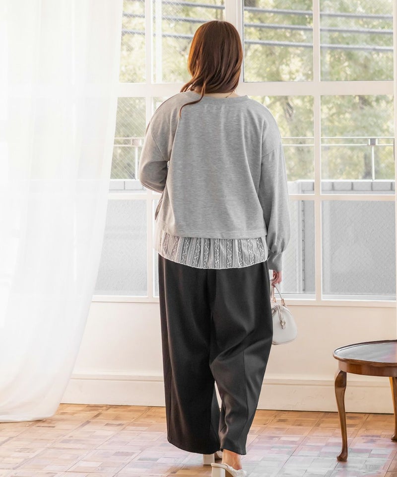 3Lサイズを着用しました!トップスはゆるっと着られるサイズ感で、インナーも程よくゆとりがある伸びのいいカットソー生地だったのでとってもラクな着心地です◎リラックスして着られました! トップスの着丈は長すぎないので、裾を出してきてもスタイルアップして見えました。2枚レイヤードするだけで抜け感が出て野暮ったくならず洗練された印象です。インナーは程よく丈があるので下お腹周りも自然にカバーしてくれすっきり見えします!ラフなのに女っぽさ満点の1枚で、お出かけにぴったり!もちろんトップス・インナーは別で着回しできるので、色々なスタイリングが楽しめます♪