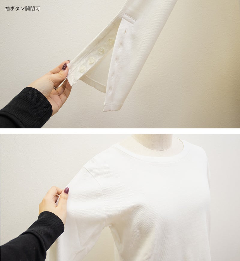 ボタンスリーブリブプルオーバー ボタンスリーブリブプルオーバー