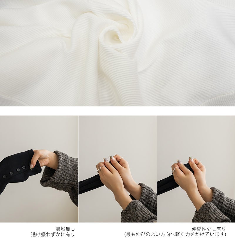 裏地・透け感・伸縮性 裏地無し、透け感わずかに有り、伸縮性少し有り