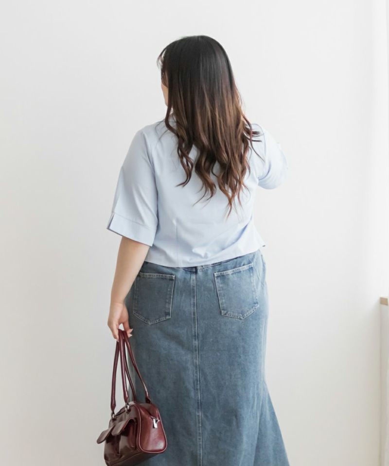 3Lサイズを着用しました。肩やバスト周りにほどよくゆとりがあり、動きやすさもありました!ジップの開け具合で雰囲気が変えられるので、気分やシーンに合わせてアレンジできるのが嬉しいポイント♪襟付きデザインできちんと感もありつつ、軽やかな素材でカジュアルにも着こなせる万能シャツです。パンツにもスカートにもバランスよく合わせやすい丈感で、着回しの幅が広がります!