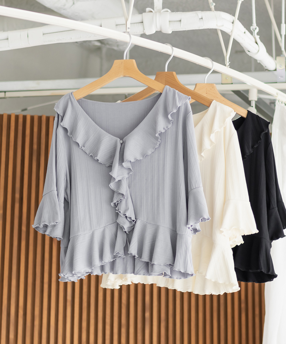 CLETTEオリジナル★フリルデザインランダムリブカットソー CLETTEオリジナル★フリルデザインランダムリブカットソー