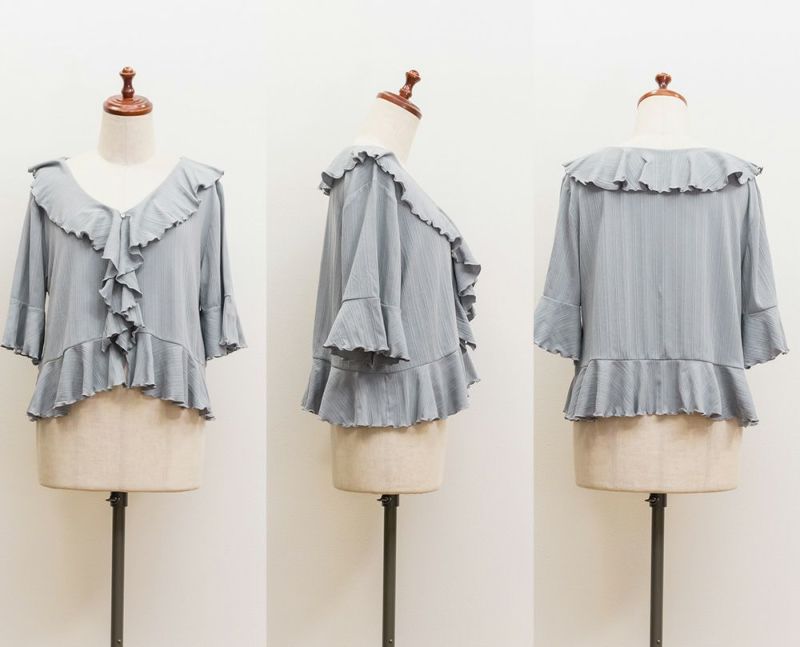 フリルのボリュームもデザインも可愛い 生地は安っぽく感じたけど、ブルーの色味も可愛い 買ってよかった