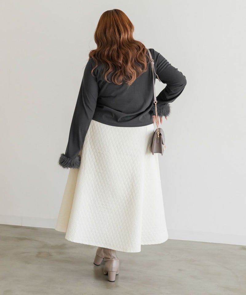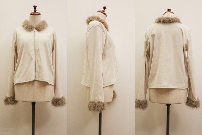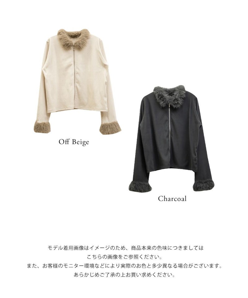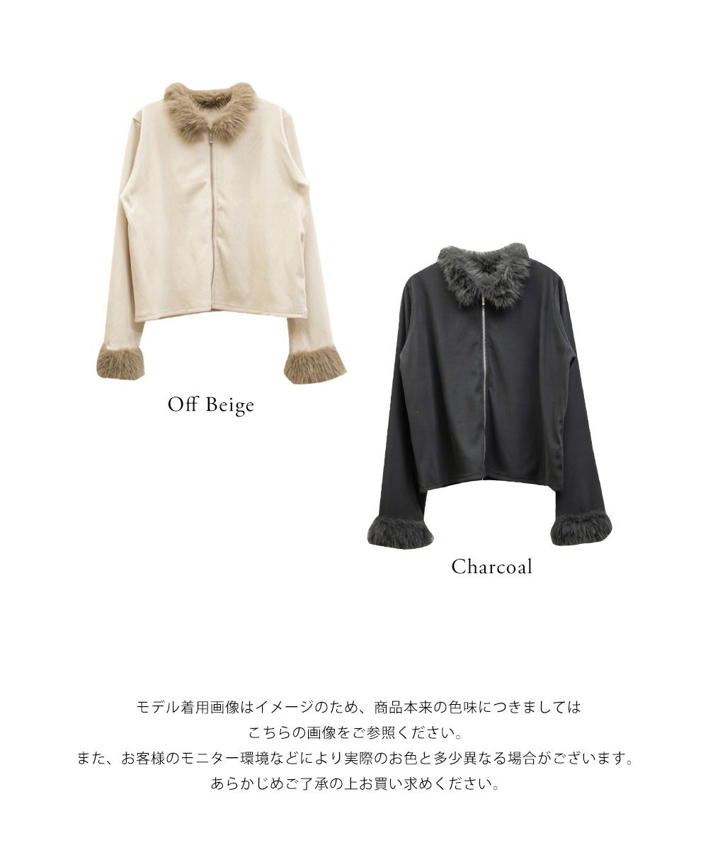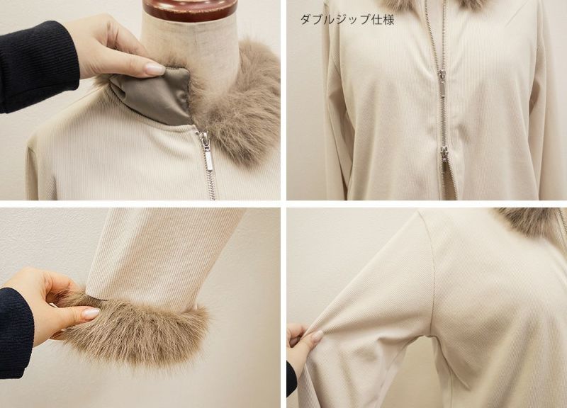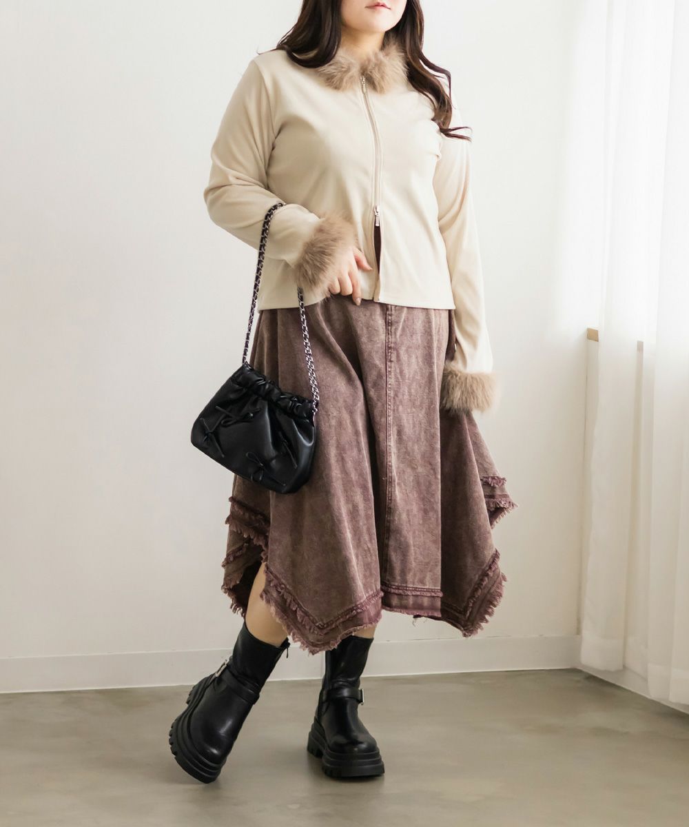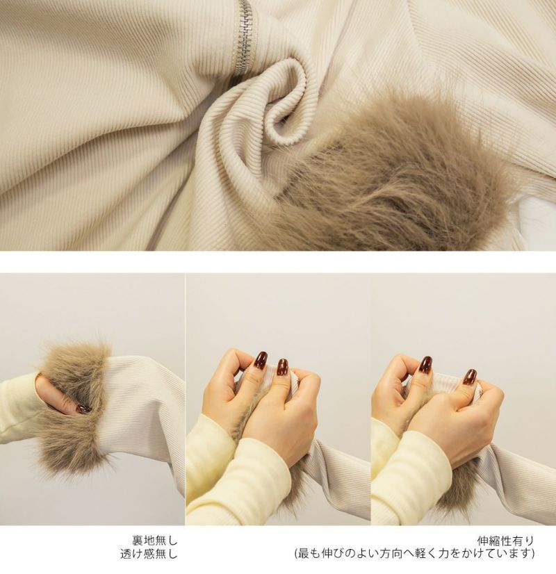 3Lサイズを着用してちょうどいいサイズ感でした。ダブルジップなので首元と裾は好きな空き具合で着用出来ます◎伸縮性があるリブカットソー生地で、程よくハリがあってボディラインも拾いづらいです!程よく短丈ですっきりとコンパクトな印象に着られて今っぽいシルエットが可愛いです♪襟と袖にファーがついていてアクセントになってフェミニンに着こなせます!スカートはもちろん、デニムパンツや、ワンピースに羽織っても良さそうです!