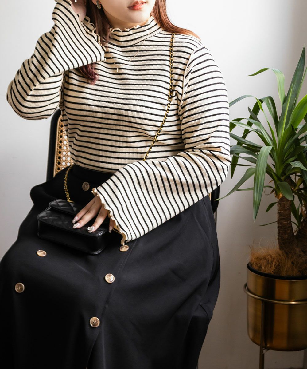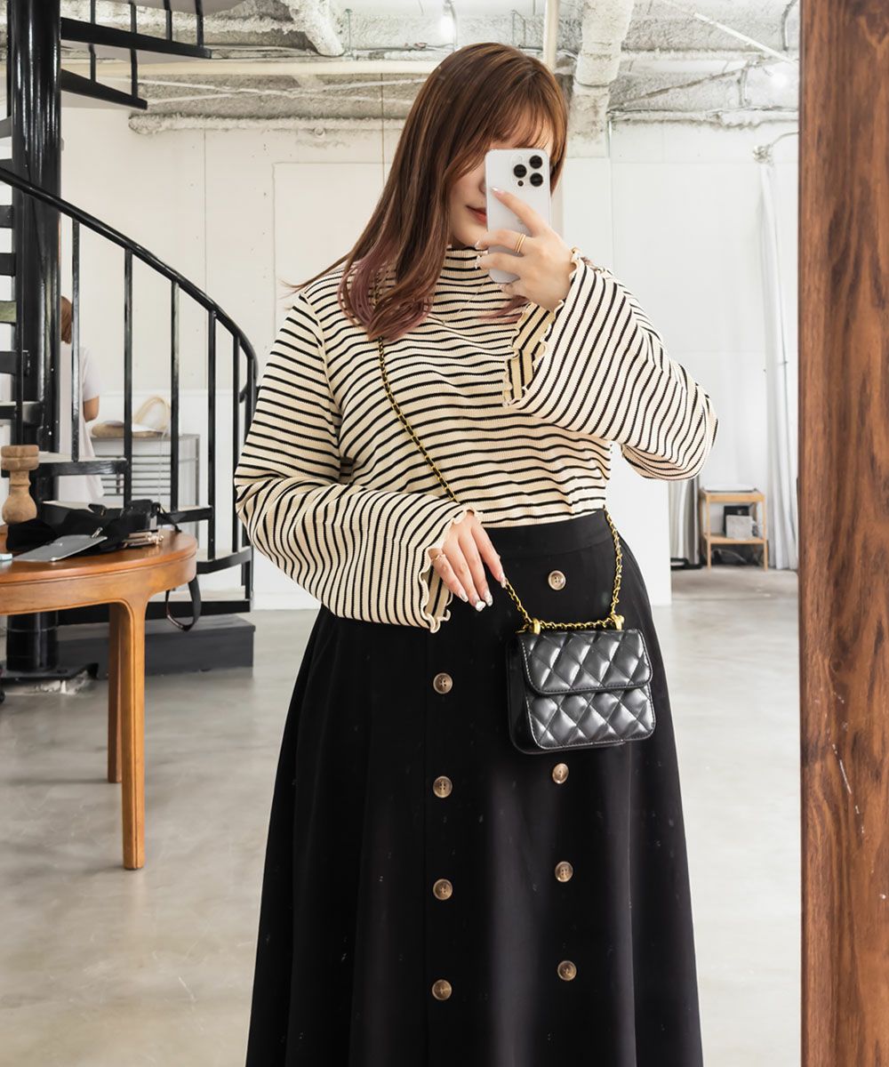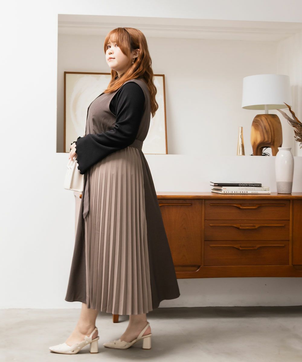 3Lを着て丁度いいサイズでした。身体にフィットしすぎないサイズ感だから、1枚でトップスとしても使えるのが嬉しいです!ワンピースのインナー使いにもおすすめなので、色々な着回しが可能◎フレアスリーブで女性らしい、大人っぽいスタイルが完成します!