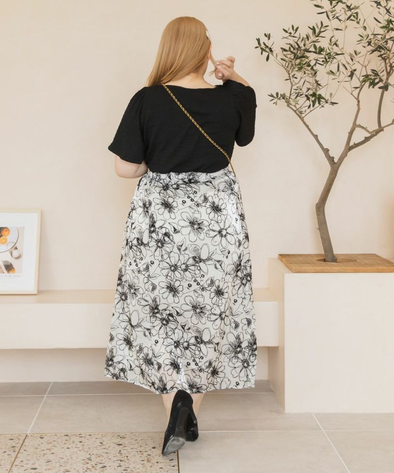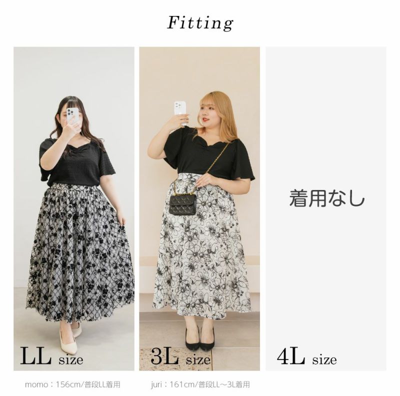 3Lを着てちょうどいいサイズ感でした。顔回りはすっきりとあいていて、袖もゆったりしているから着やせできるデザイン◎さらりとしてシワの心配のない生地だから、たくさん着たくなります!暑い時期も快適で、伸縮性もあるから着心地も満足です♪スカートはもちろんパンツとも合わせやすそうです!
