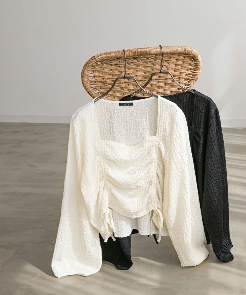 CLETTE オリジナル スクエアネック シャーリング プルオーバー 長袖 リボン 秋冬 フェミニン ガーリー CLETTEオリジナル★スクエアネックシャーリングプルオーバー