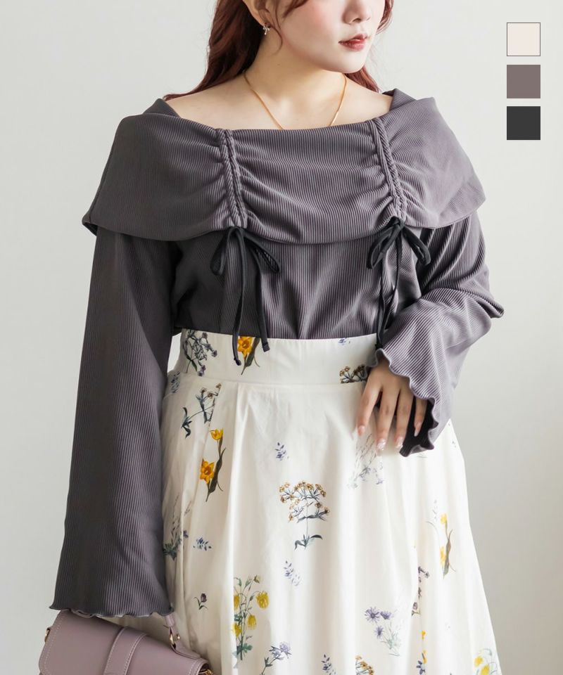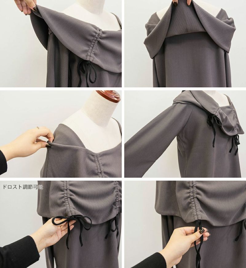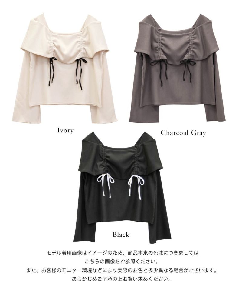CLETTE オリジナル オフショル風 ドロスト リボン プルオーバー 長袖 秋冬 トレンド カジュアル トレンド CLETTEオリジナル★オフショル風ドロストリボンプルオーバー