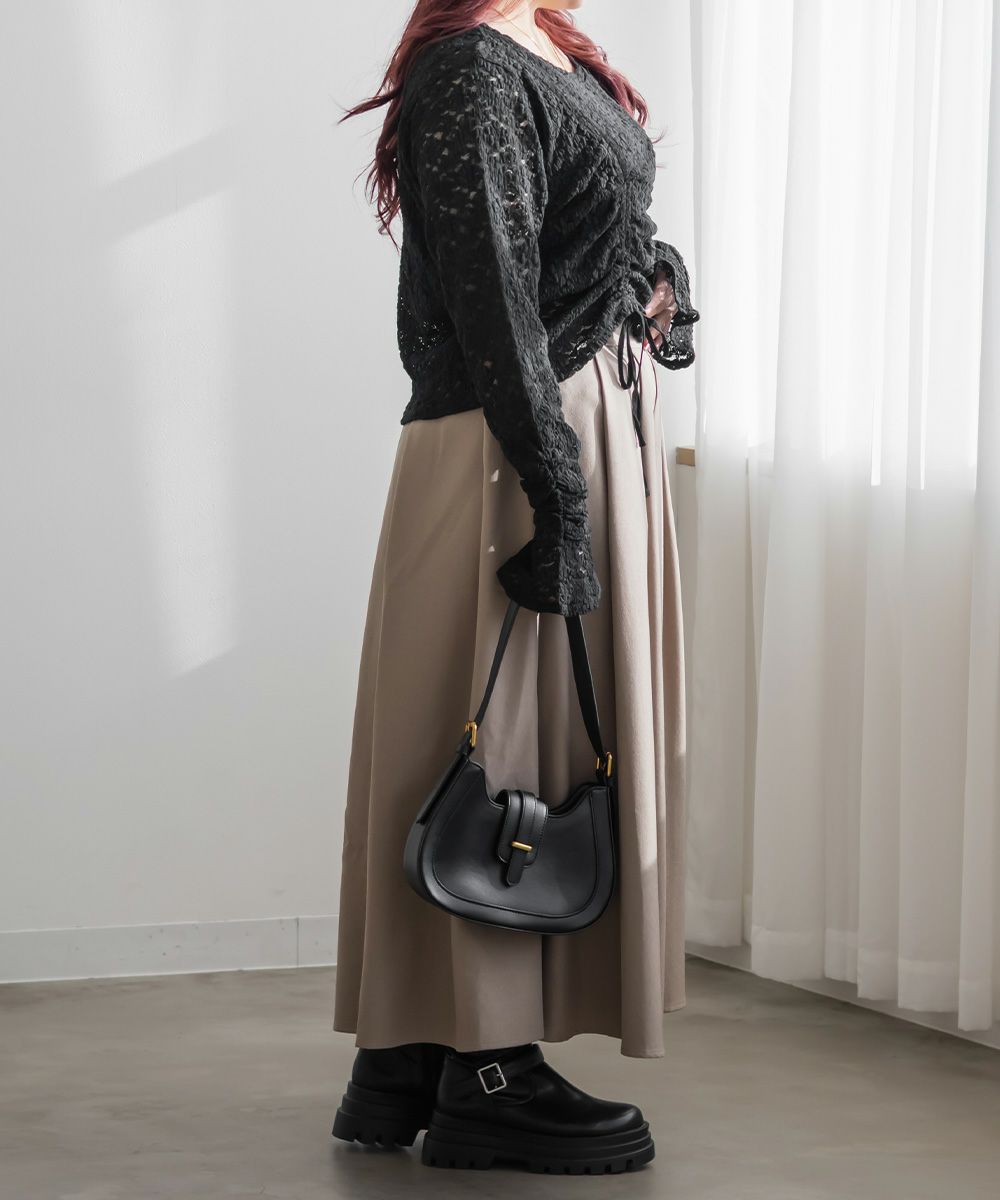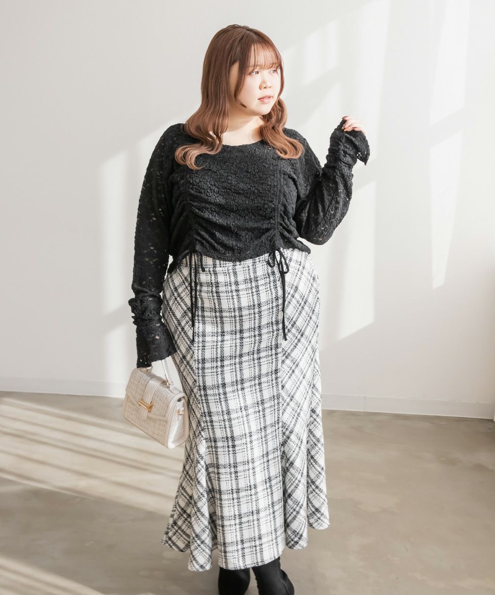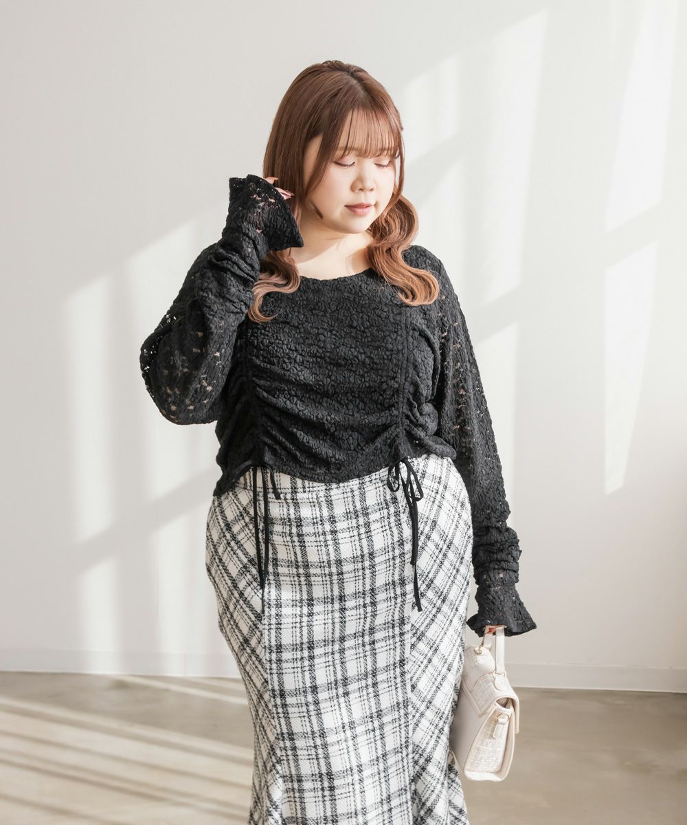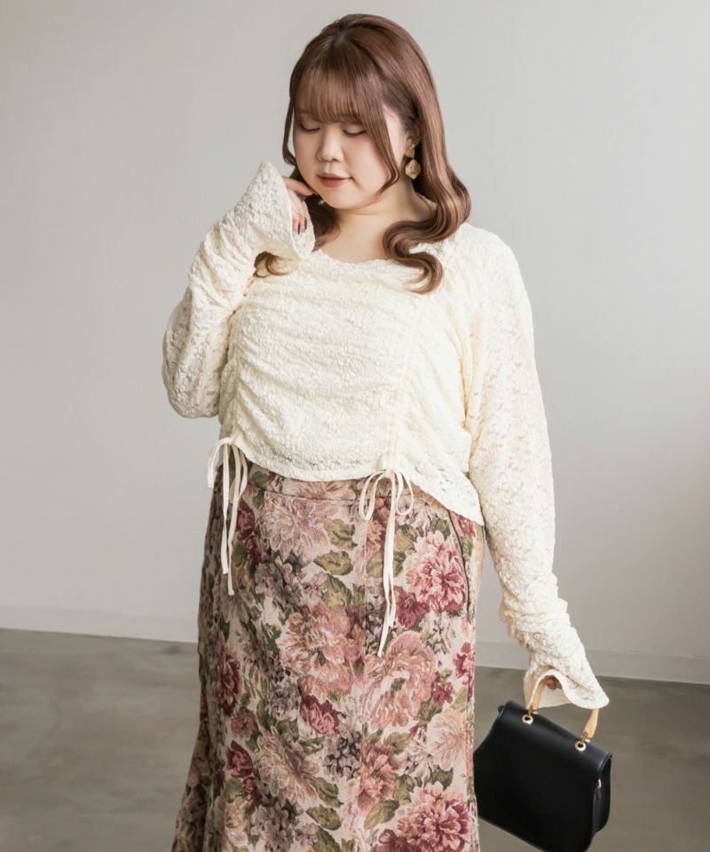 3Lを着てちょうどいいサイズでした。レースだけど程よく伸縮性のある生地でとっても着心地が良かったです!さらりとした肌触りだから、季節の変わり目とかも快適に過ごせそうです!くしゅっとシャーリングデザインで、前着丈を短くできます。人によって好みの長さがあると思うので、自分用に調節できるのはかなり嬉しいです!丈が短いと足が長く見えて、裾をインしなくていいので、お腹のポッコリもカバーしてくれます♪機能性もデザインもとっても優秀なので、着心地もおしゃれも楽しめる服を探してる方におすすめです!キャミワンピなどのインナーにもつかえて色々着回しできます◎