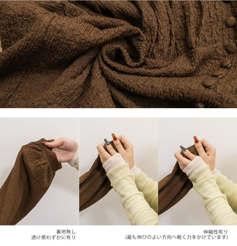 裏地・透け感・伸縮性 裏地無し、透け感わずかに有り、伸縮性有り