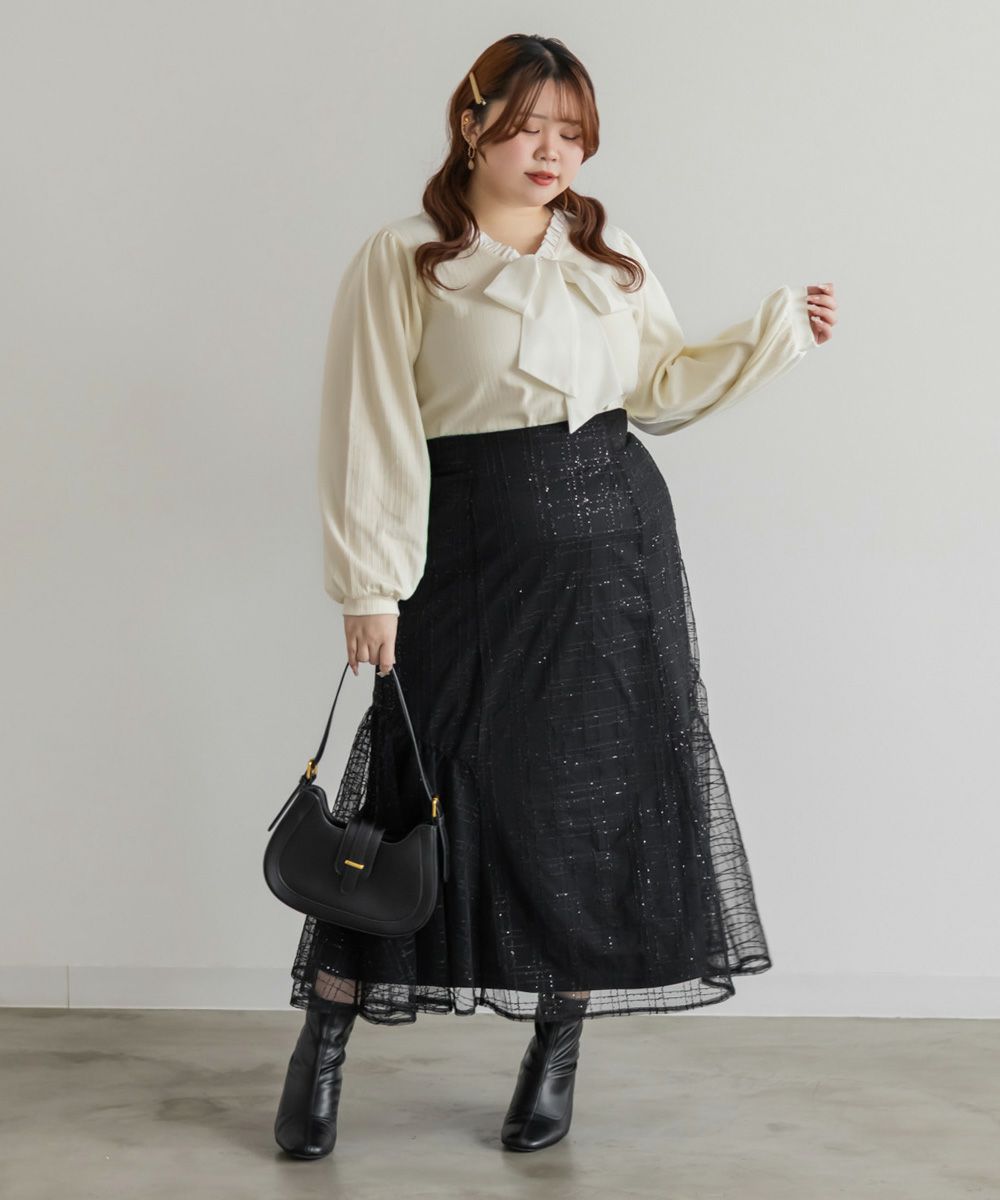 3Lサイズを着用しました。程よくゆとりを持たせたシルエットでちょうどよく、リブ素材なので伸びがよくて窮屈感なく着られました。フロントのリボンデザインが可愛くて大人フェミニンに仕上がるのが嬉しいポイント。縦ラインのリブで自然とすっきり見えて、インでもアウトでもバランス良く着られました!スカート合わせで女性らしくも、パンツで少しカジュアルに着ても可愛いです♪ ジャンスカなどのインナーにするのもおすすめ!デイリーにもお出かけにも、お仕事にも使いやすい1枚だと思います◎