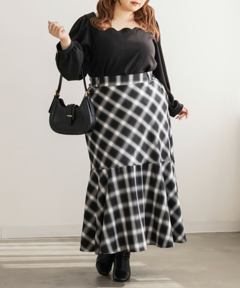 3Lサイズを着用しましたが程よくよくゆとりもあり、生地もやわらかくリラックスして着られました。構築的な切替が入っていて、自然に体型をカバーしてくれて、メリハリのある印象です!上品見えする生地・デザインでシンプルなのに特別感のある1枚です!首元はスカラップになっていてさりげなく華やかなのもポイントです。オフィスカジュアルなどにもピッタリで、普段使いはデニムパンツ合わせでカジュアルに、スカート合わせでフェミニンにも着回せる万能トップスです◎
